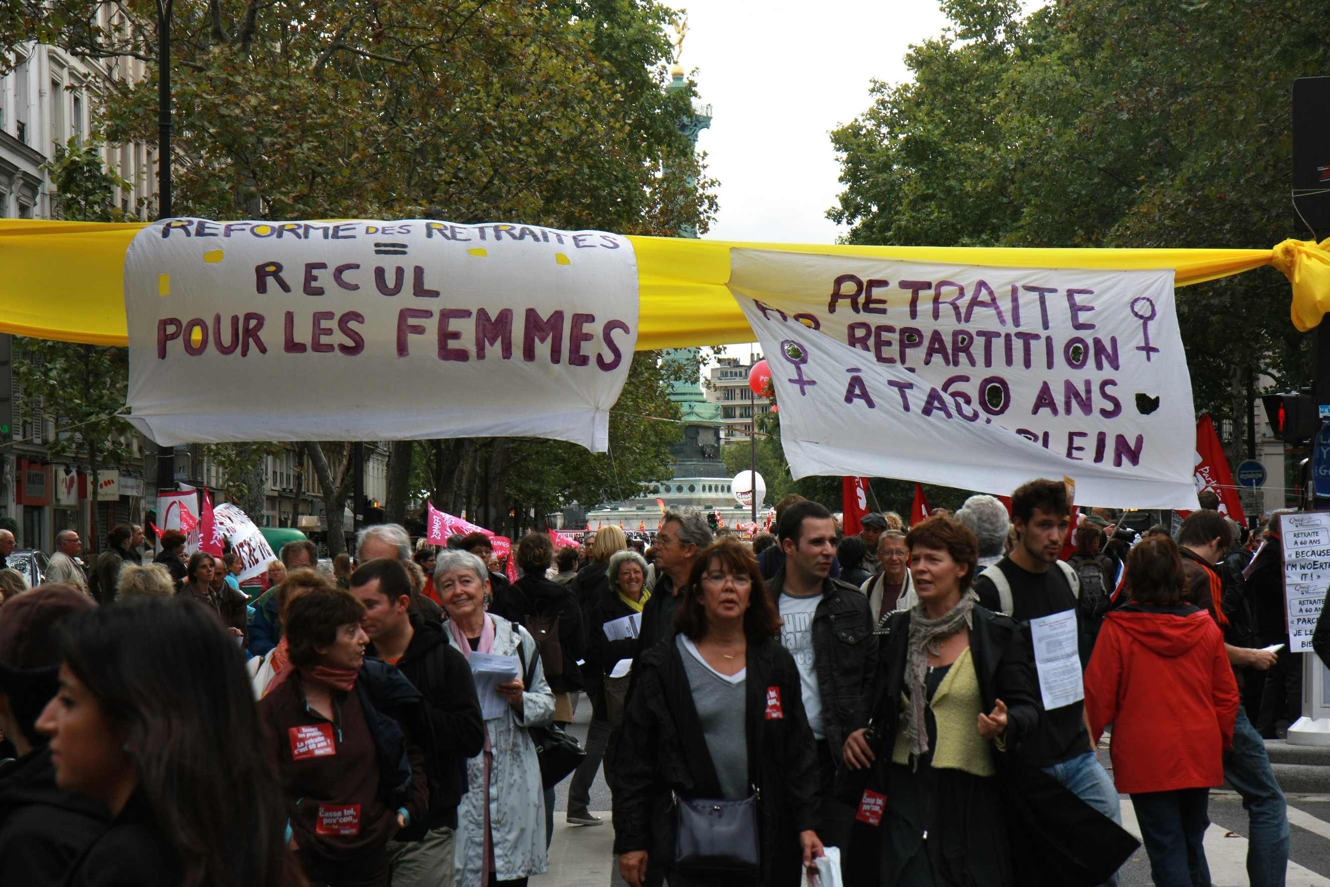 Télécharger la photo “banderole réforme des retraites = recul pour les femmes”