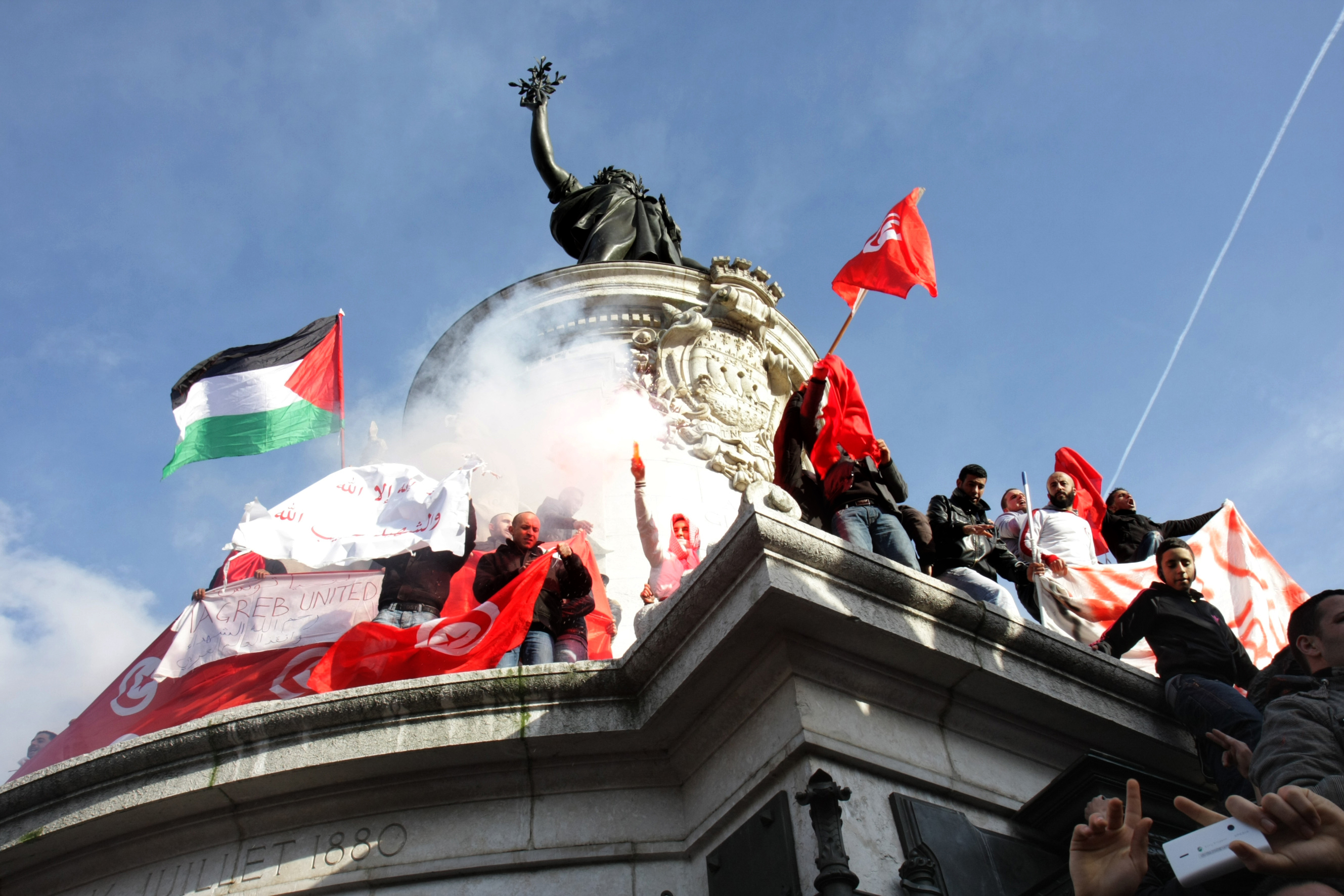Télécharger la photo “Les manifestants sur la statue de la République”