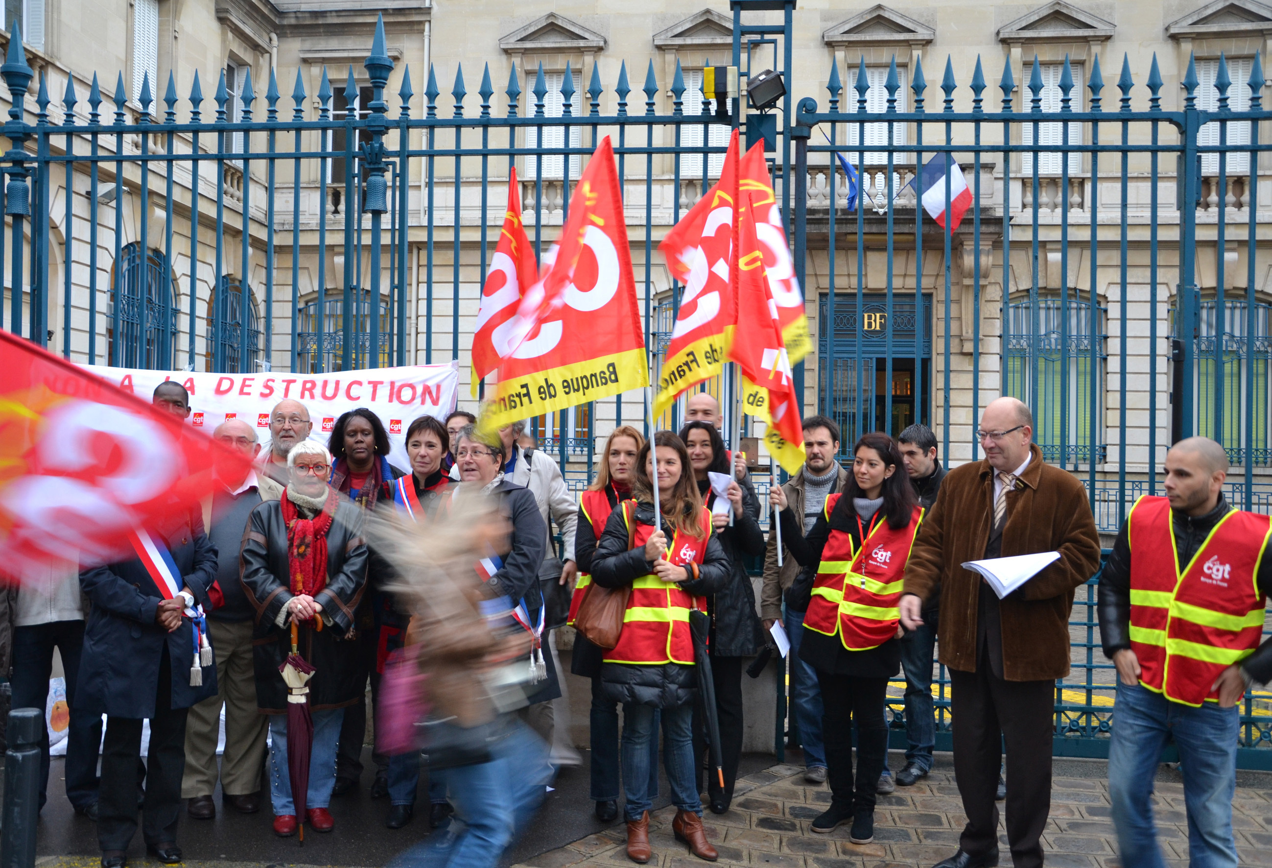 Télécharger la photo “rassemblement des salariés de la Banque de France contre la fermeture de la succursale de Saint-Denis”