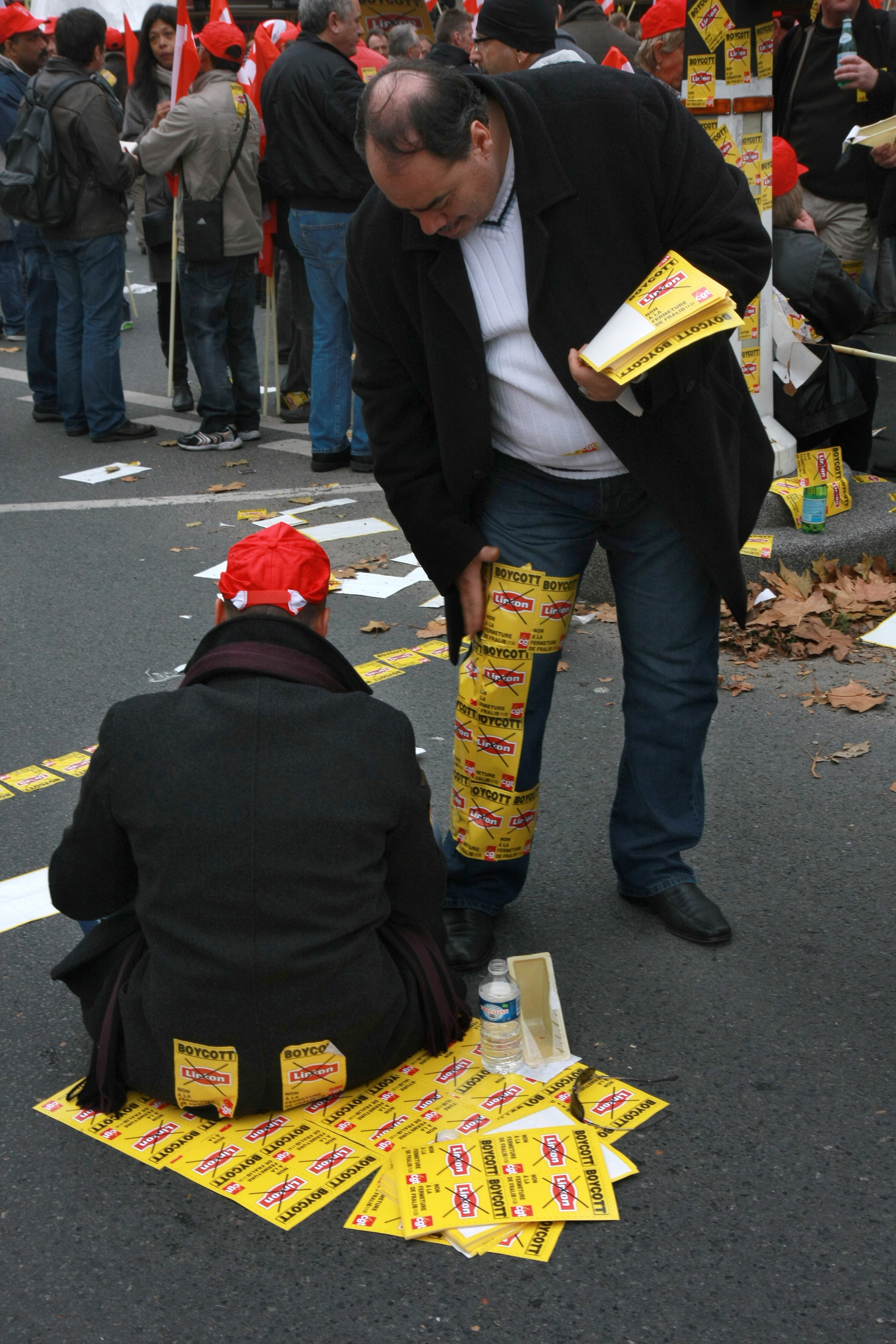 Télécharger la photo “Manifestants se recouvrant d'autocollants boycott Lipton”