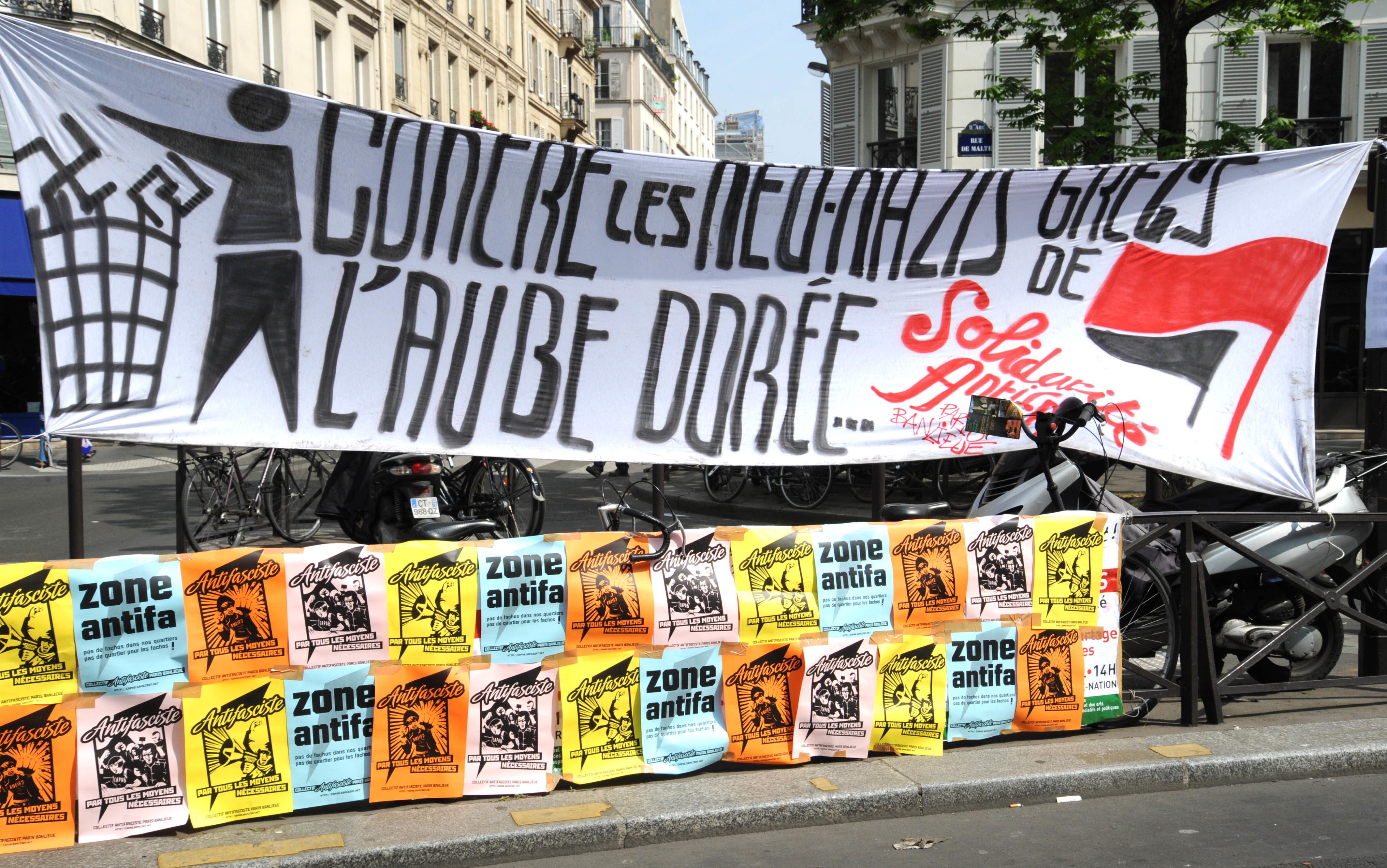 Télécharger la photo “Banderole contre les Néo nazis Grecs de l'Aube Dorée solidarité Antifa”