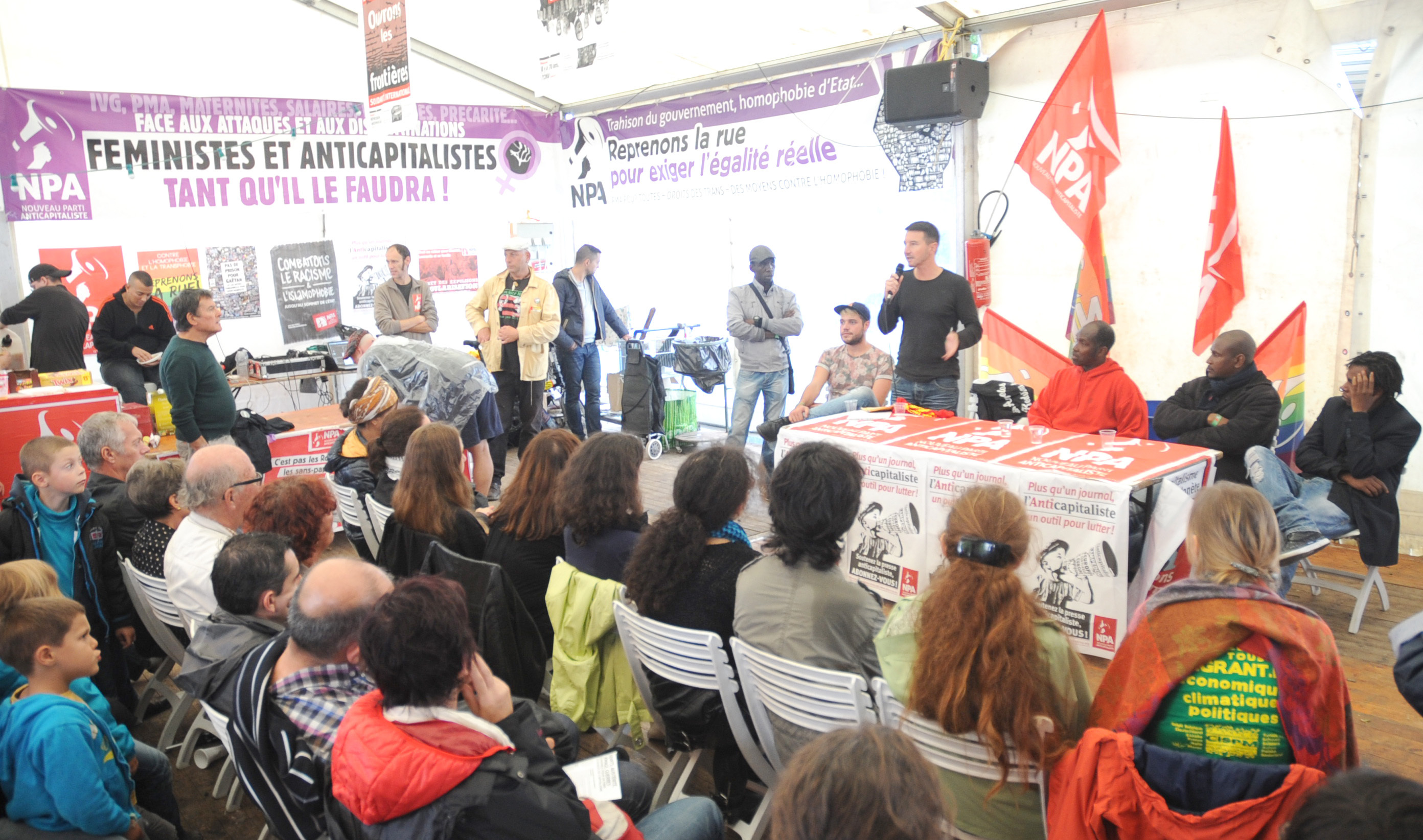 Télécharger la photo “Débat stand du Npa Ouvrez les frontières liberté de circulation avec Olivier Besancenot et des Migrants ”