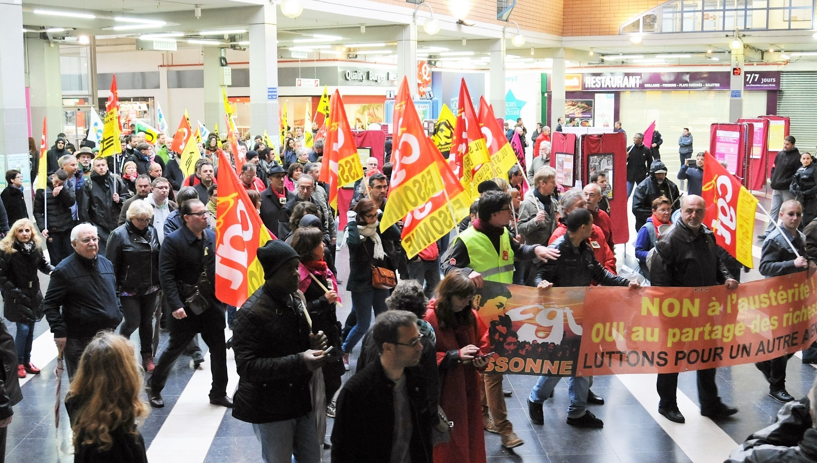 Télécharger la photo “Manifestation dans le centre commercial de l'Agora Evry l'ors de la visite de M Valls”