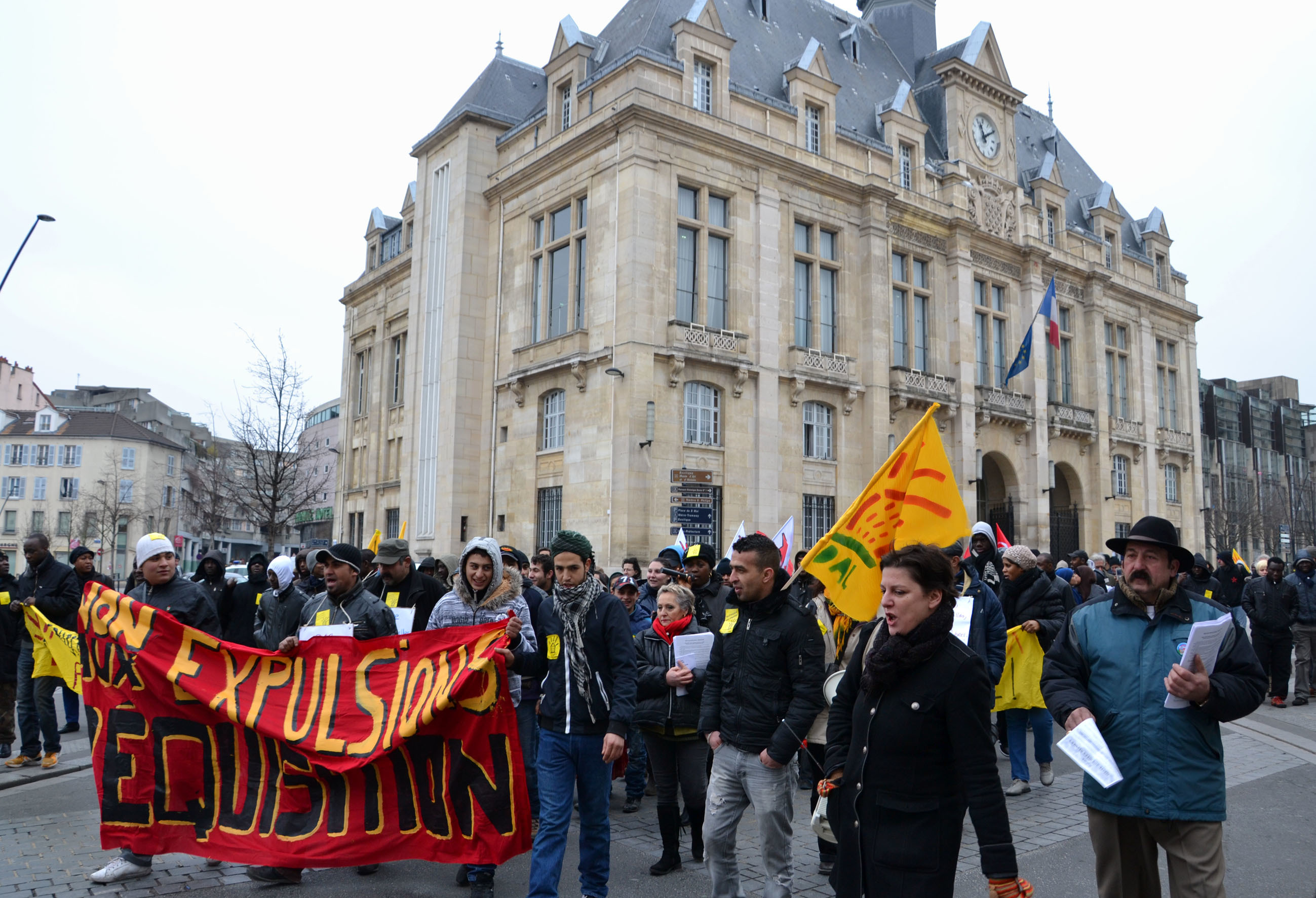 Télécharger la photo “contre les expulsions. Banderolle de tête, manifestants Rroms”