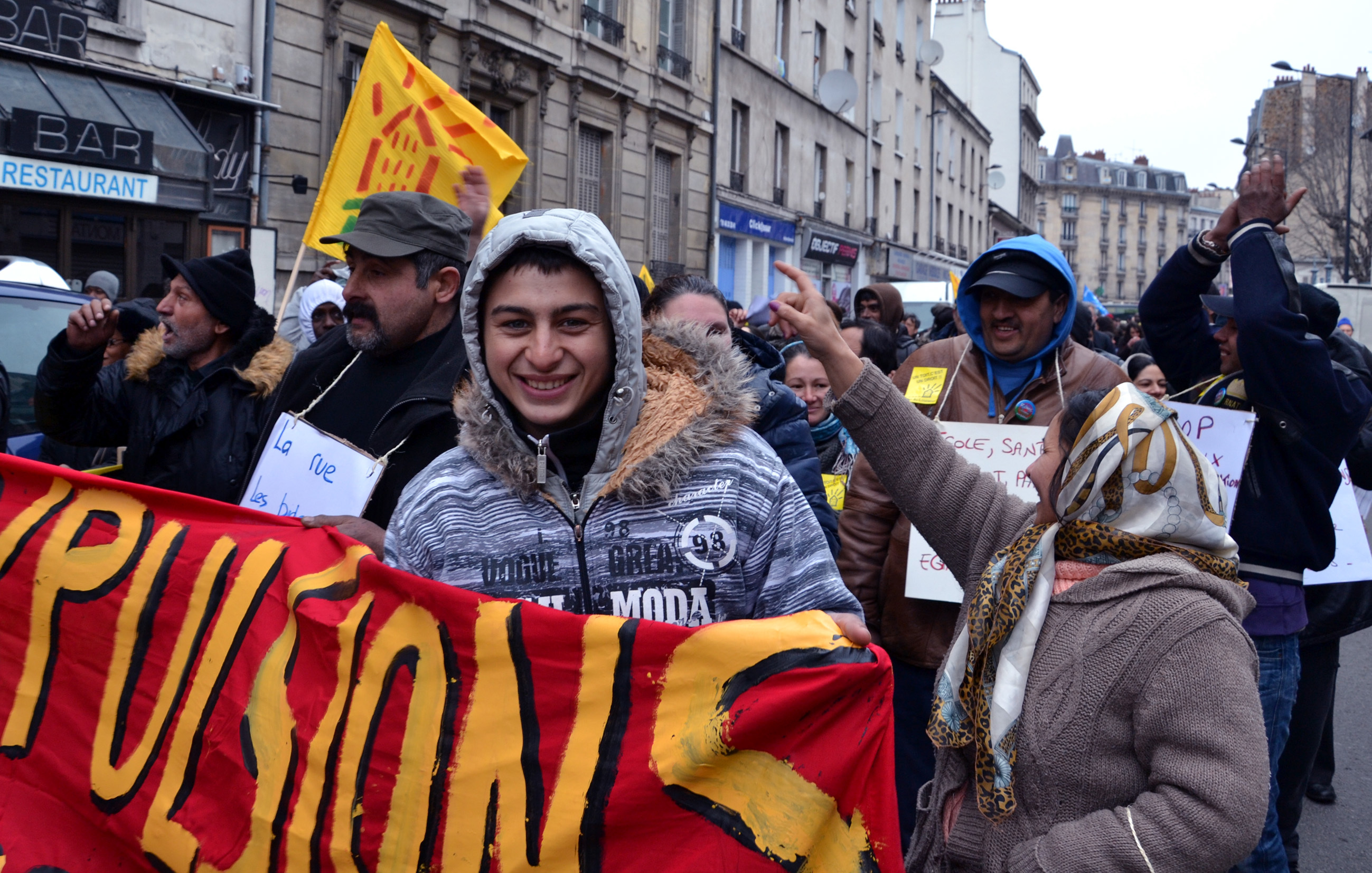 Télécharger la photo “manif contre les expulsions, banderolle de tête, manifestants Rroms”