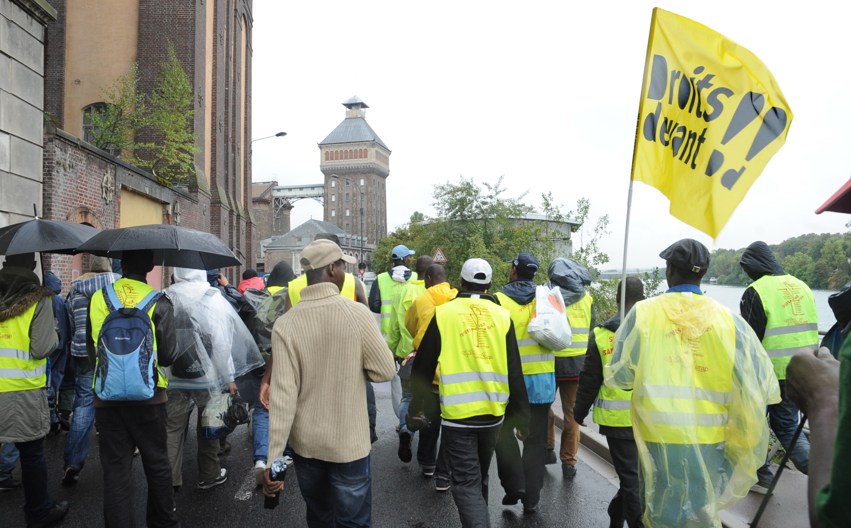 Télécharger la photo “Sans-papiers et Migrants de l'Union nationale des Sans-papiers (UNSP) drapeau droits devant!”