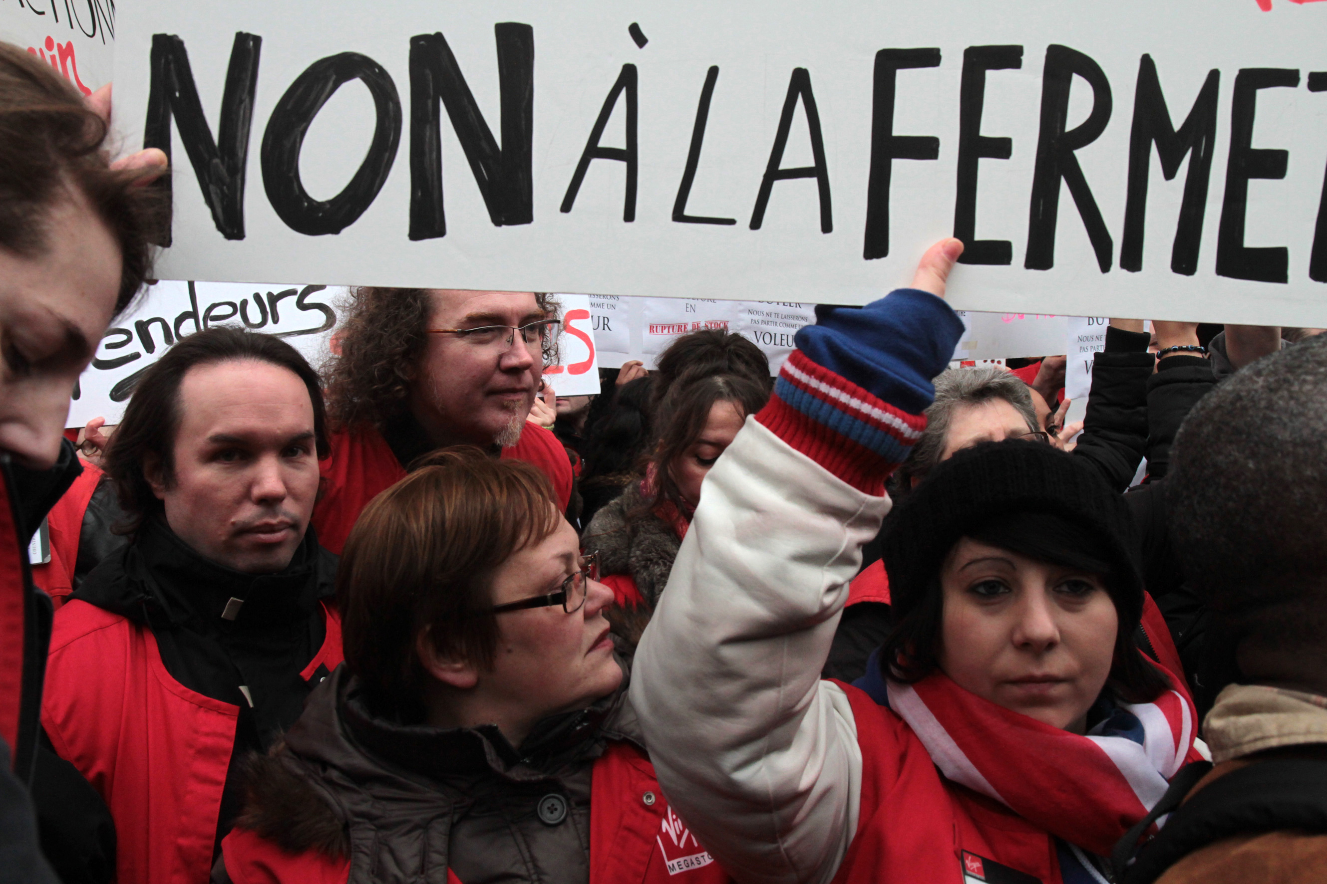 Télécharger la photo “Salariés avec pancarte Non à la fermeture”