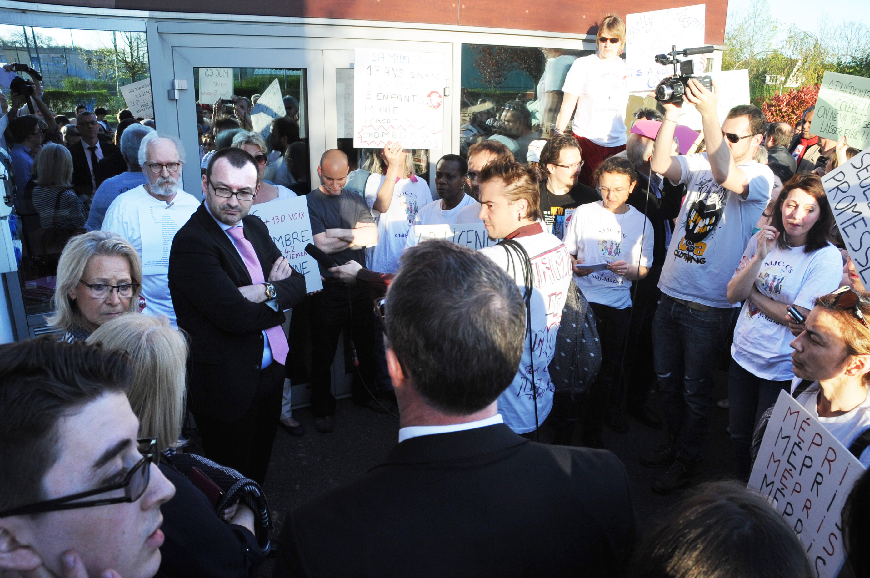 Télécharger la photo “Action MJC-CS du 14 avril devant le bâtiment où devait se tenir le conseil municipal entérinant le choix du maire de Chilly-Mazarin Essonne”