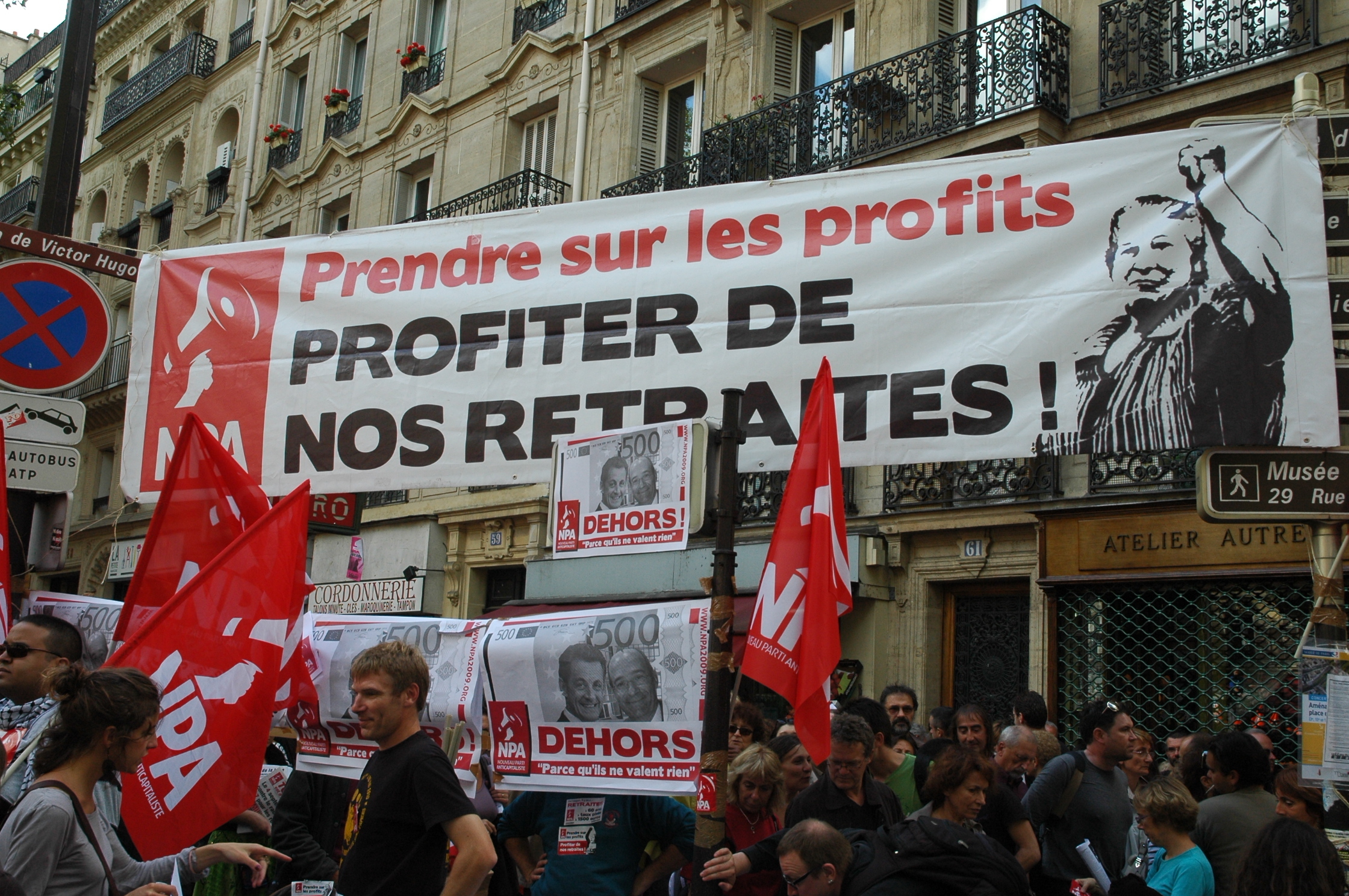 Télécharger la photo “point Fixe banderole du Npa, prendre sur les profits profiter de nos retraites!”