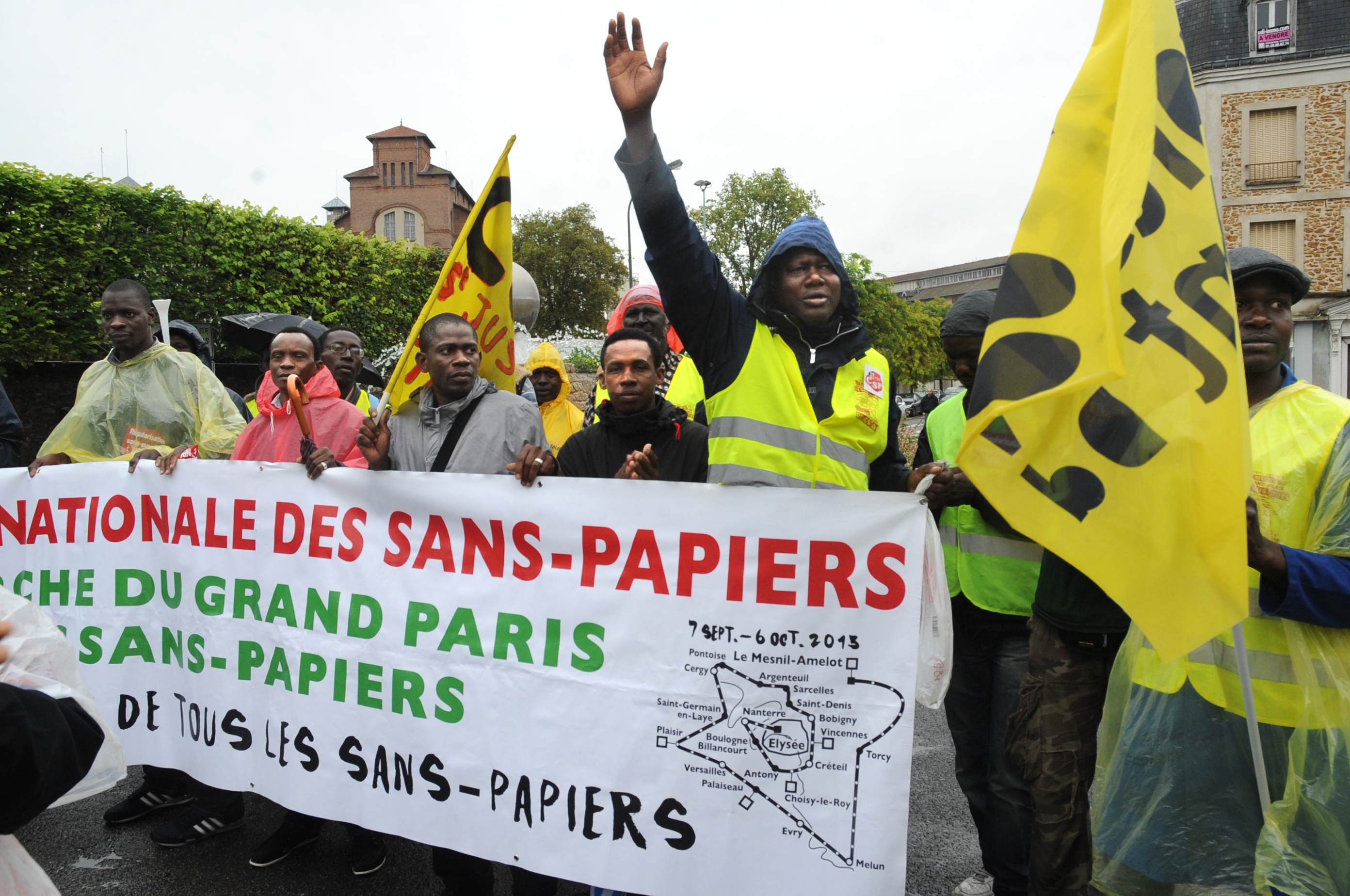Télécharger la photo “Sans-papiers et Migrants de l'Union nationale des Sans-papiers (UNSP) drapeau droits devant!”