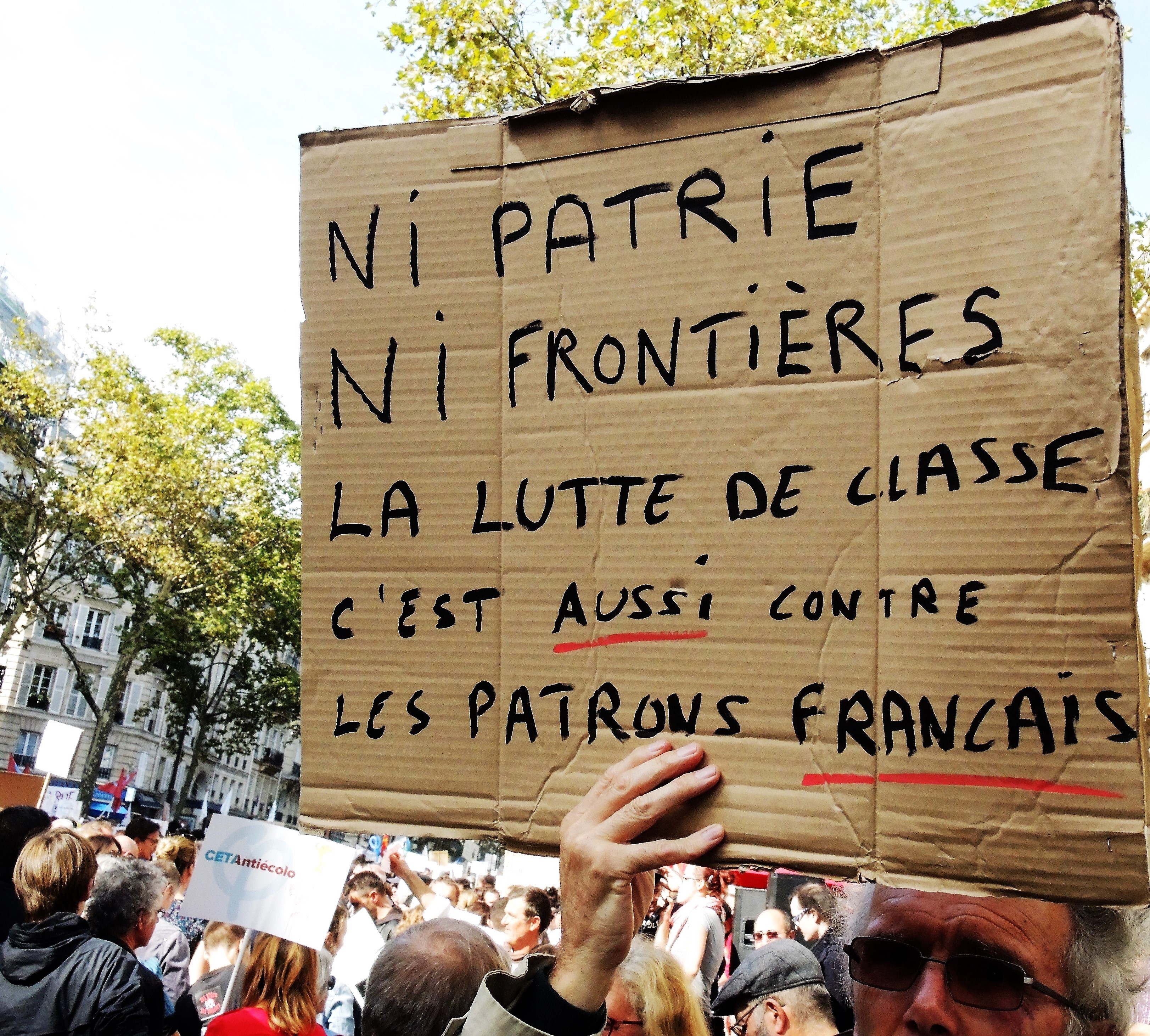 Télécharger la photo “Affichette Ni patrie ni frontières la lutte de classe c'est aussi contre les patrons Français”
