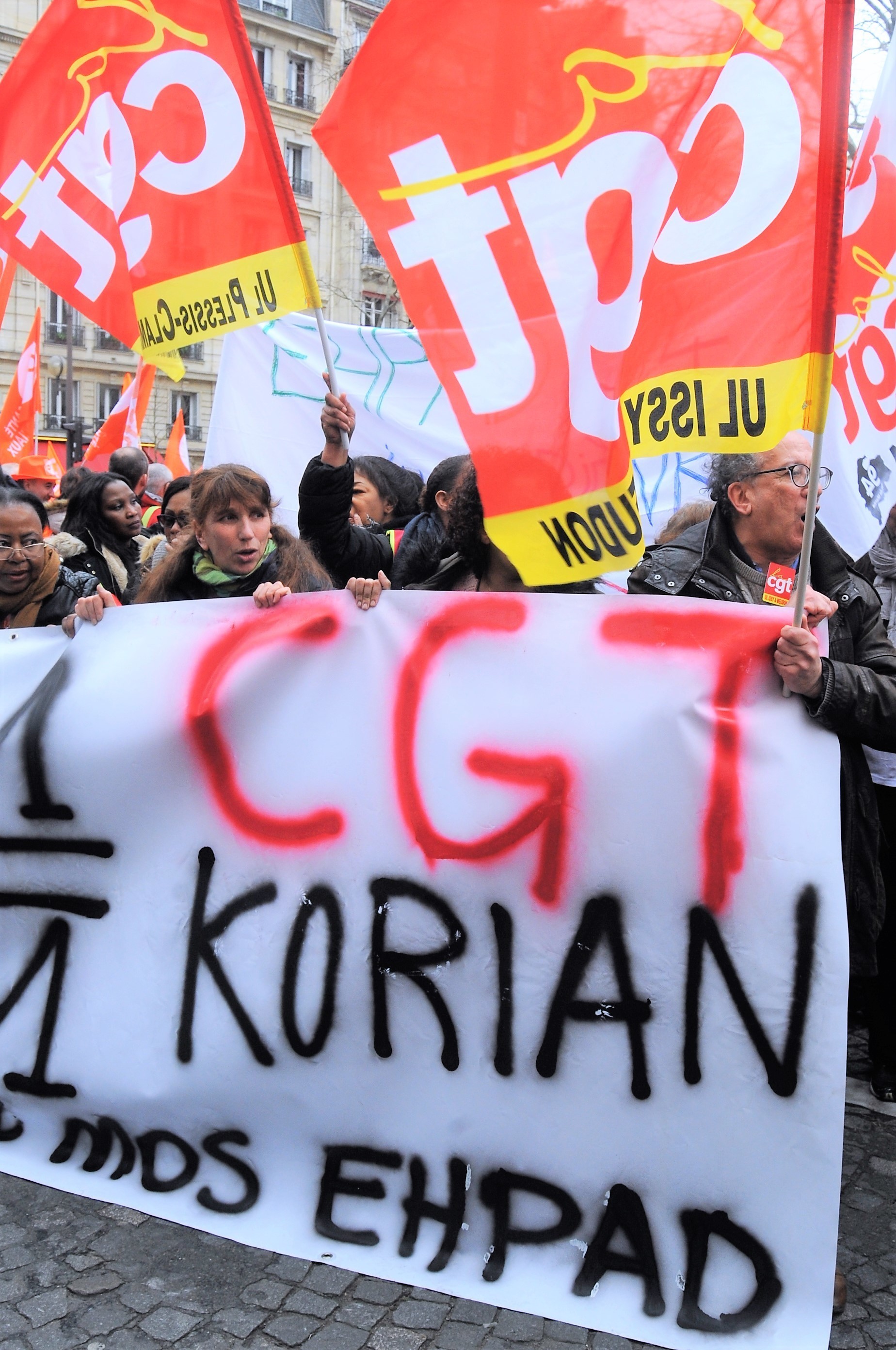 Télécharger la photo “Banderole Cgt Korian entreprise de gestion de maisons de retraite médicalisées (EHPAD) et cliniques spécialisées (SSR)”