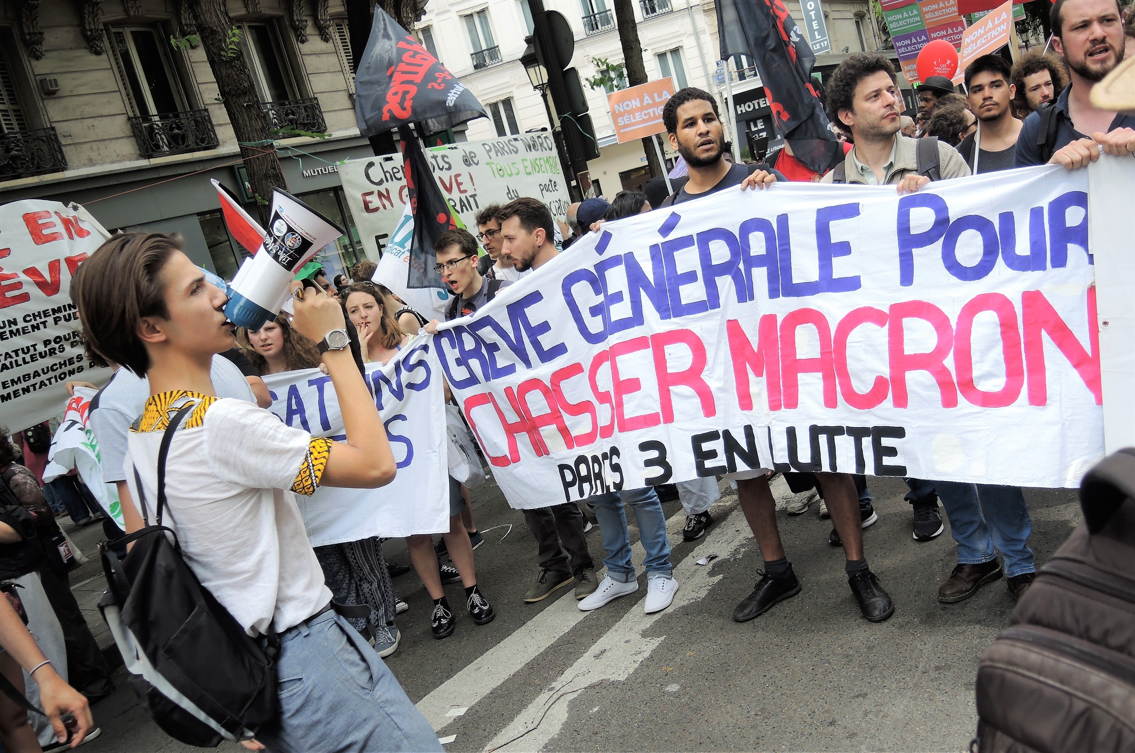 Télécharger la photo “Banderole grève générale pour chasser Macron”