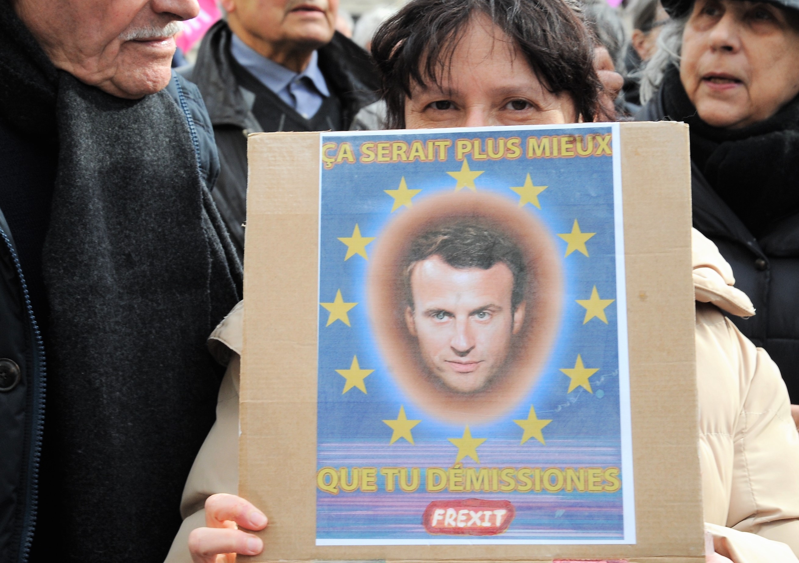 Télécharger la photo “Affichette retraités Macron ça serait mieux que tu démissionnes Frexit”