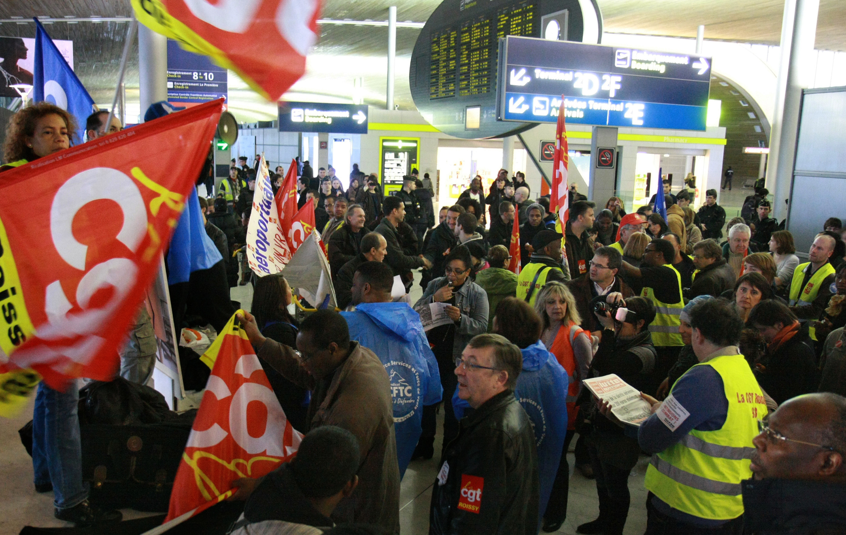 Télécharger la photo “Rassemblement des grévistes dans le terminal E à Roissy”