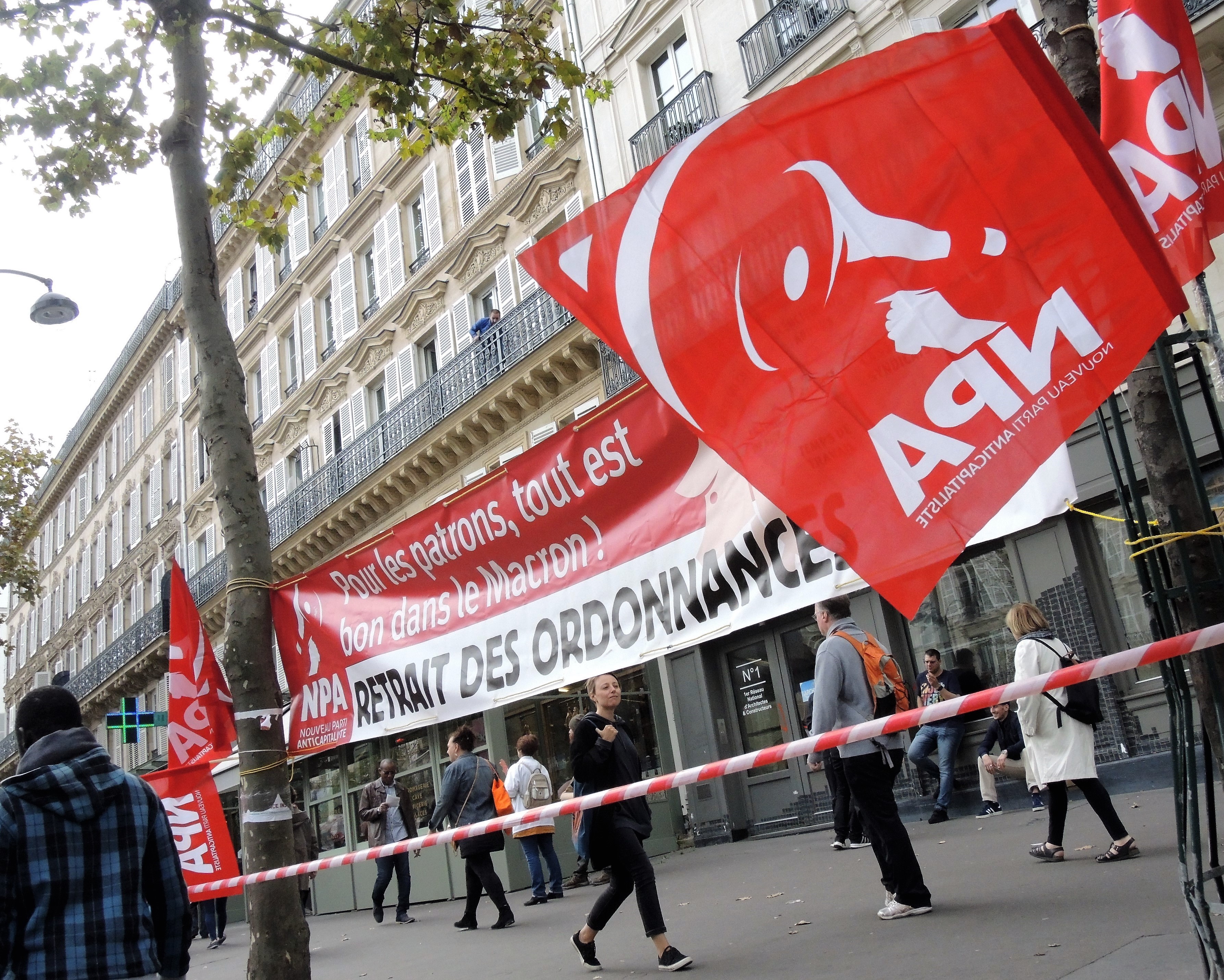 Télécharger la photo “Npa banderole retrait des Ordonnances”