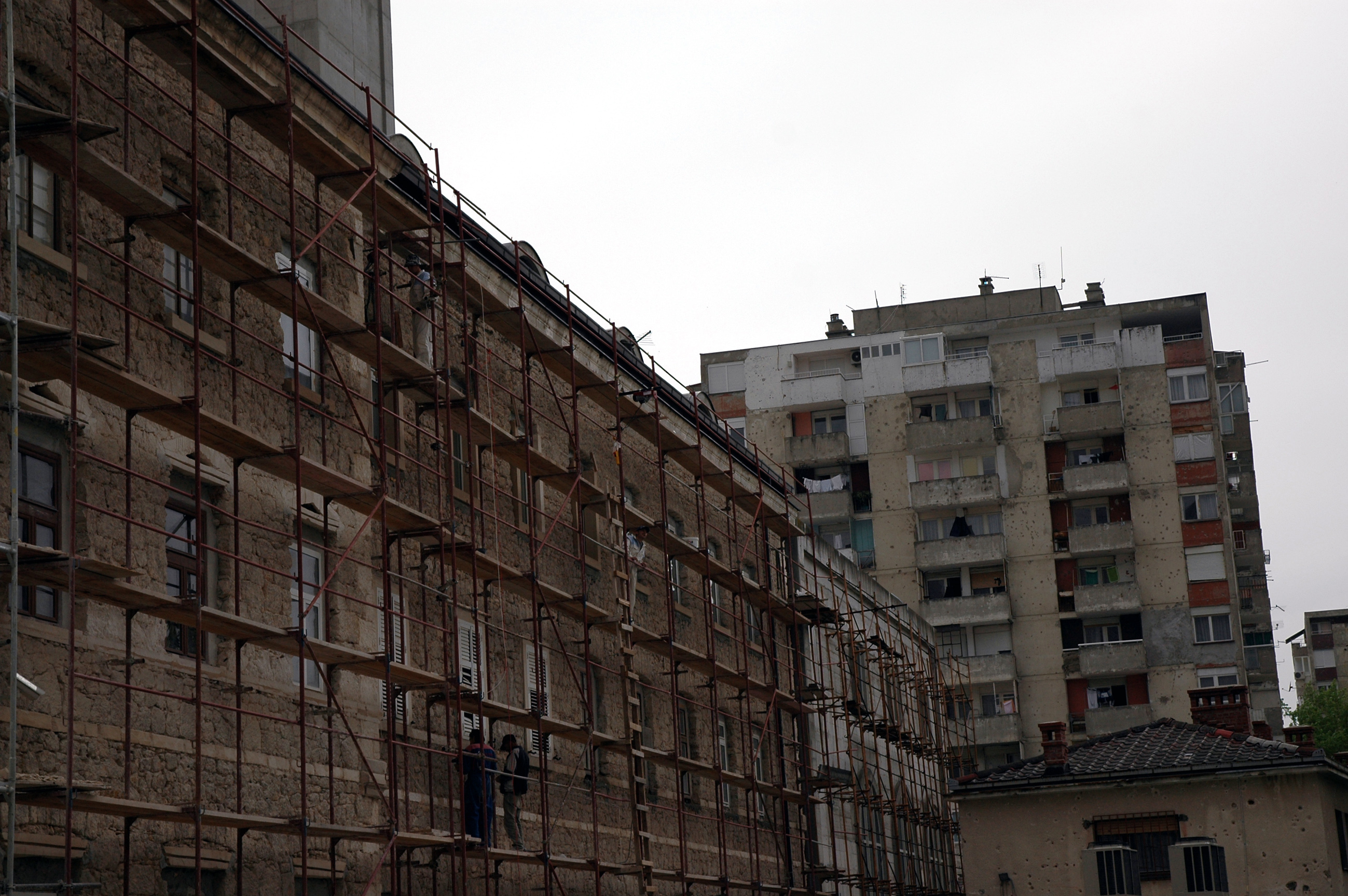 Télécharger la photo “Mostar, quartier Ouest, habitations en rénovation.”
