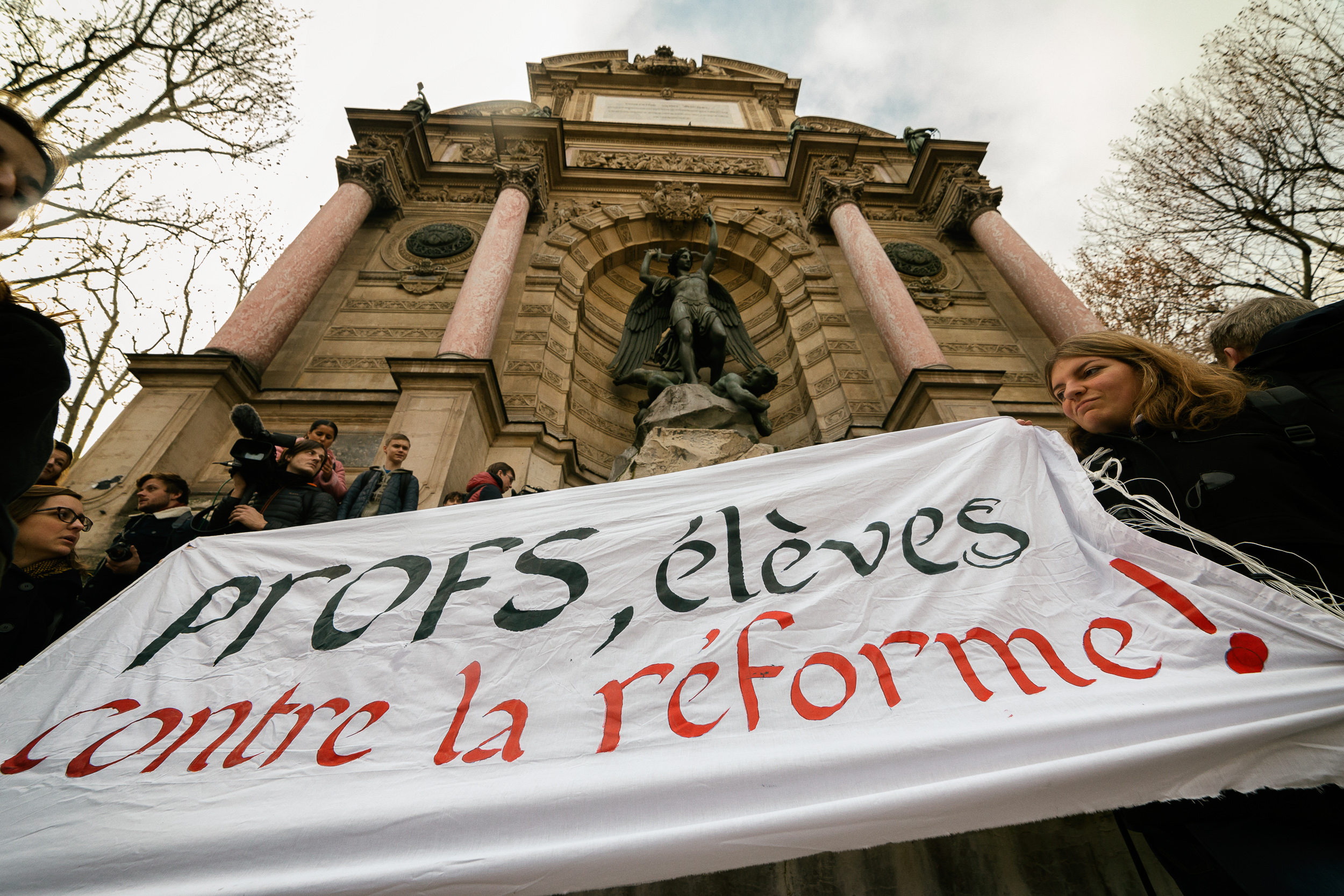Télécharger la photo “Banderolle profs, élèves contre la réforme”