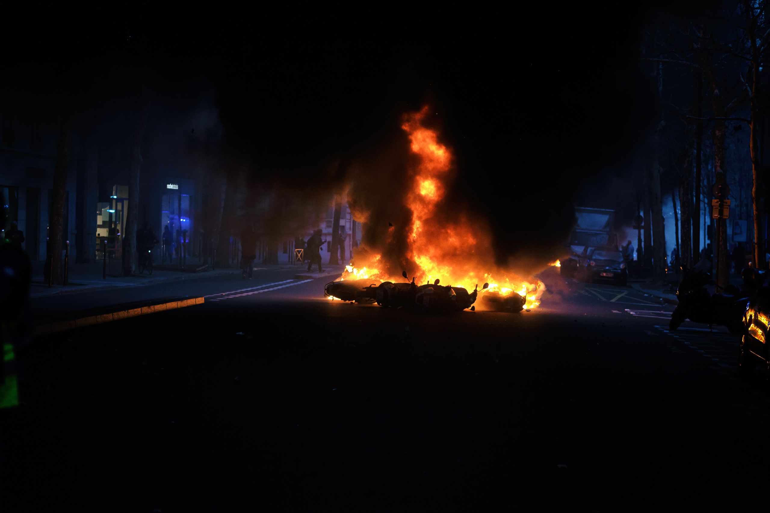 Télécharger la photo “Des scooters sont incendiés pour former des barricades”