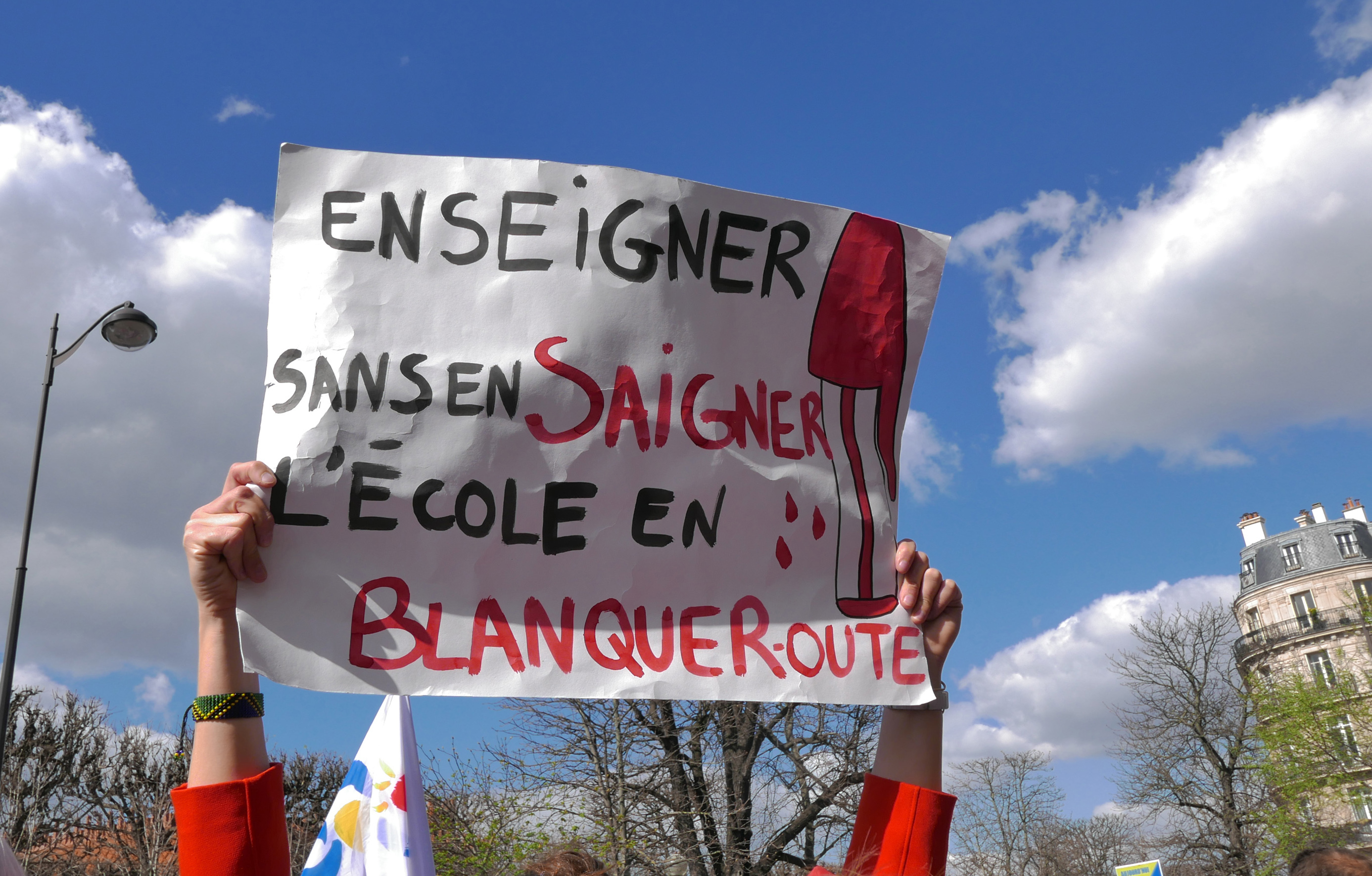 Télécharger la photo “Pancarte Enseigner sans en saigner L'école en Blanqueroute”