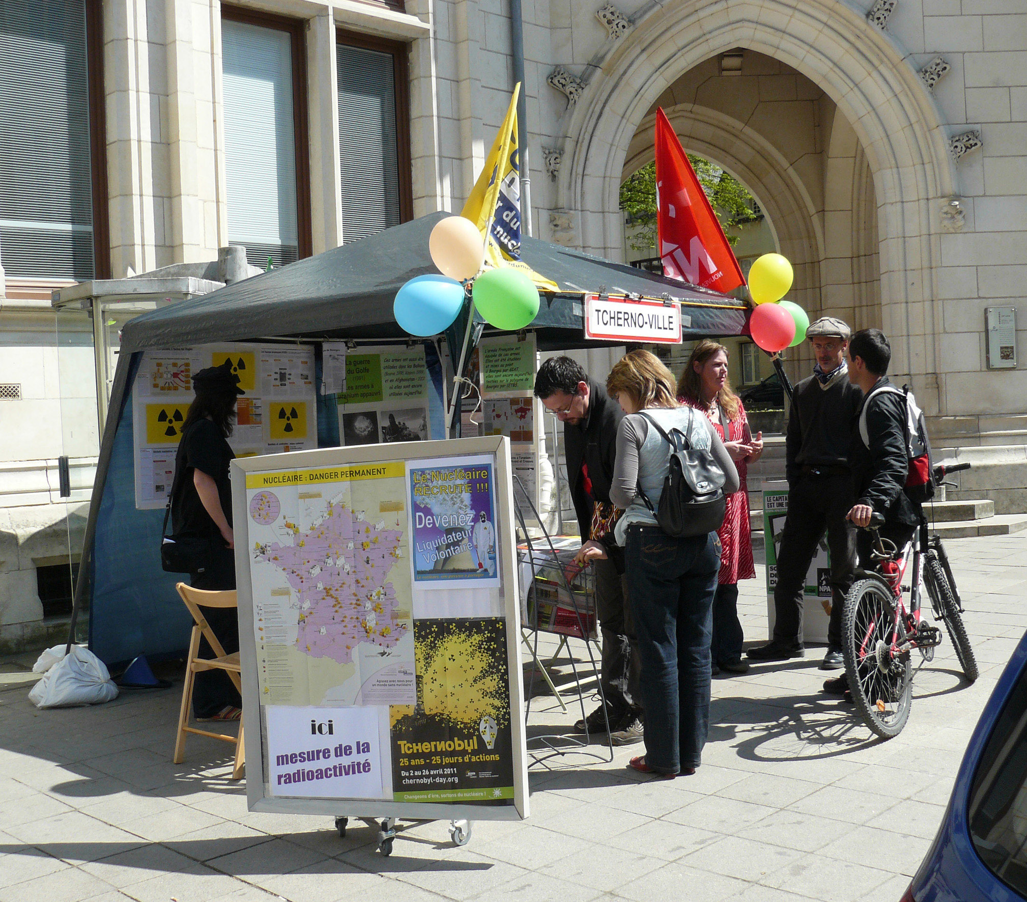 Télécharger la photo “Kiosque d'information sur le nucléaire civil et militaire à Bourges le 16 avril 2011”