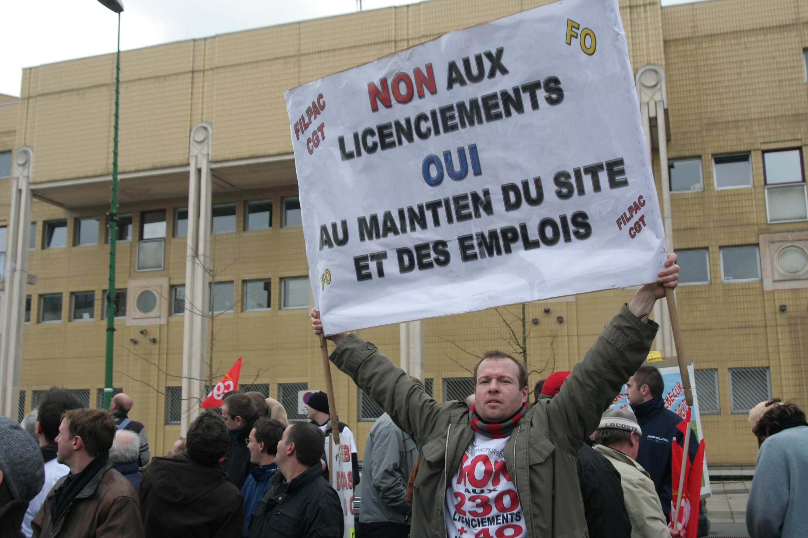 Télécharger la photo “Banderolle non aux licenciements oui au maintien du site et des emplois.”