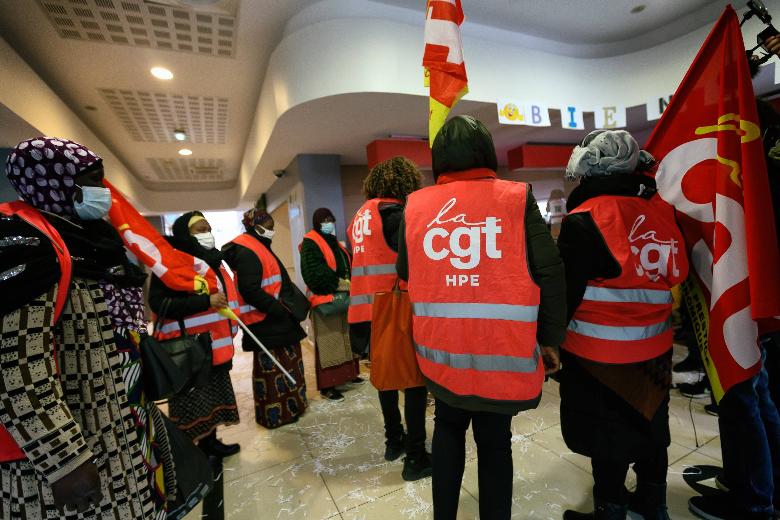 Télécharger la photo “FRANCE - SOCIAL - LABOUR - OCCUPATION OF THE LOBBY OF THE IBIS PARIS LA DEFENSE HOTEL”