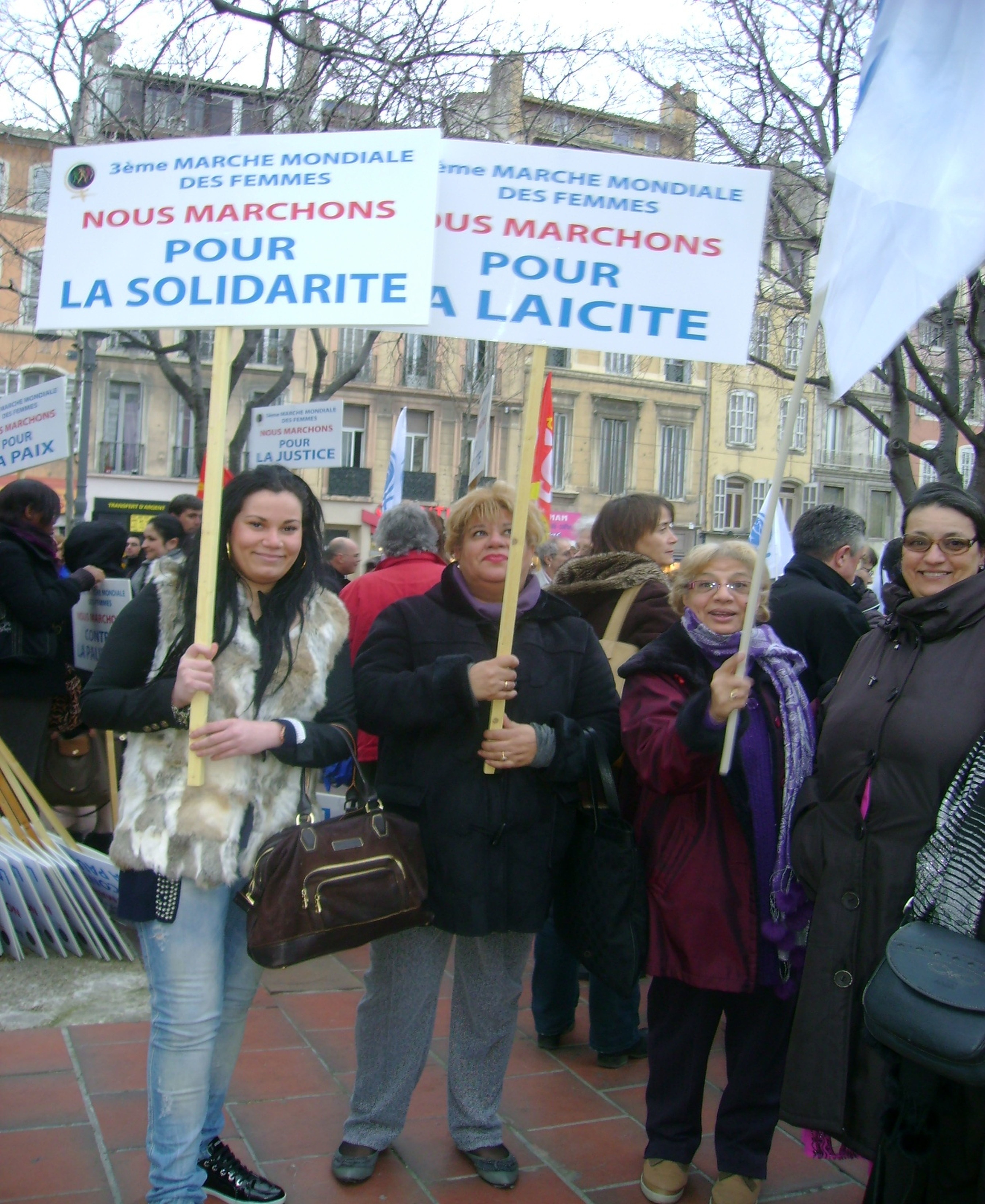 Télécharger la photo “militantes porte une affiche 3 marche mondiales des femmes NOUS MARCHONS pour la solidarité”