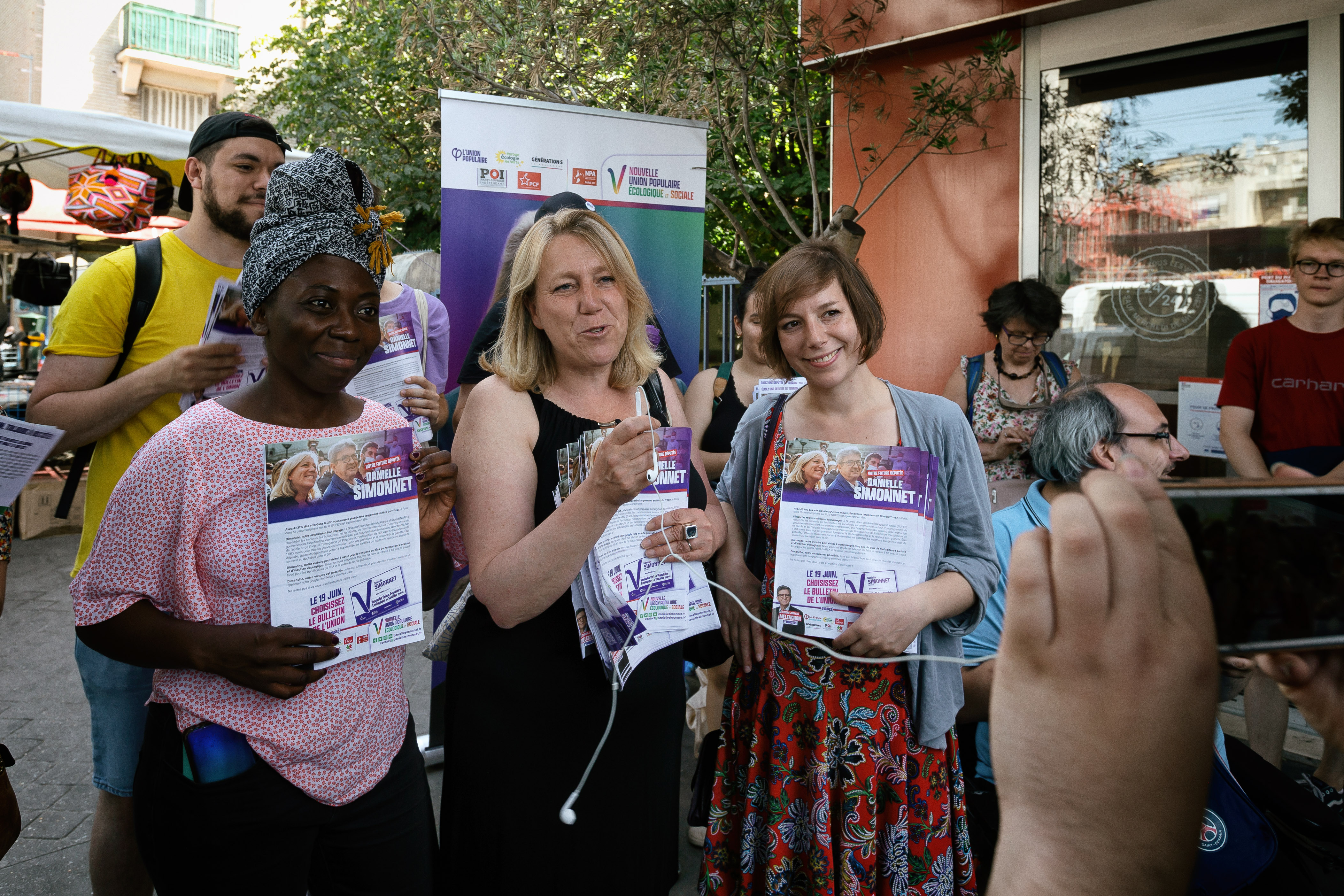 Télécharger la photo “FRANCE - DISTRIBUTION OF NUPES LEAFLETS AT THE PORTE DE MONTREUIL MARKET”