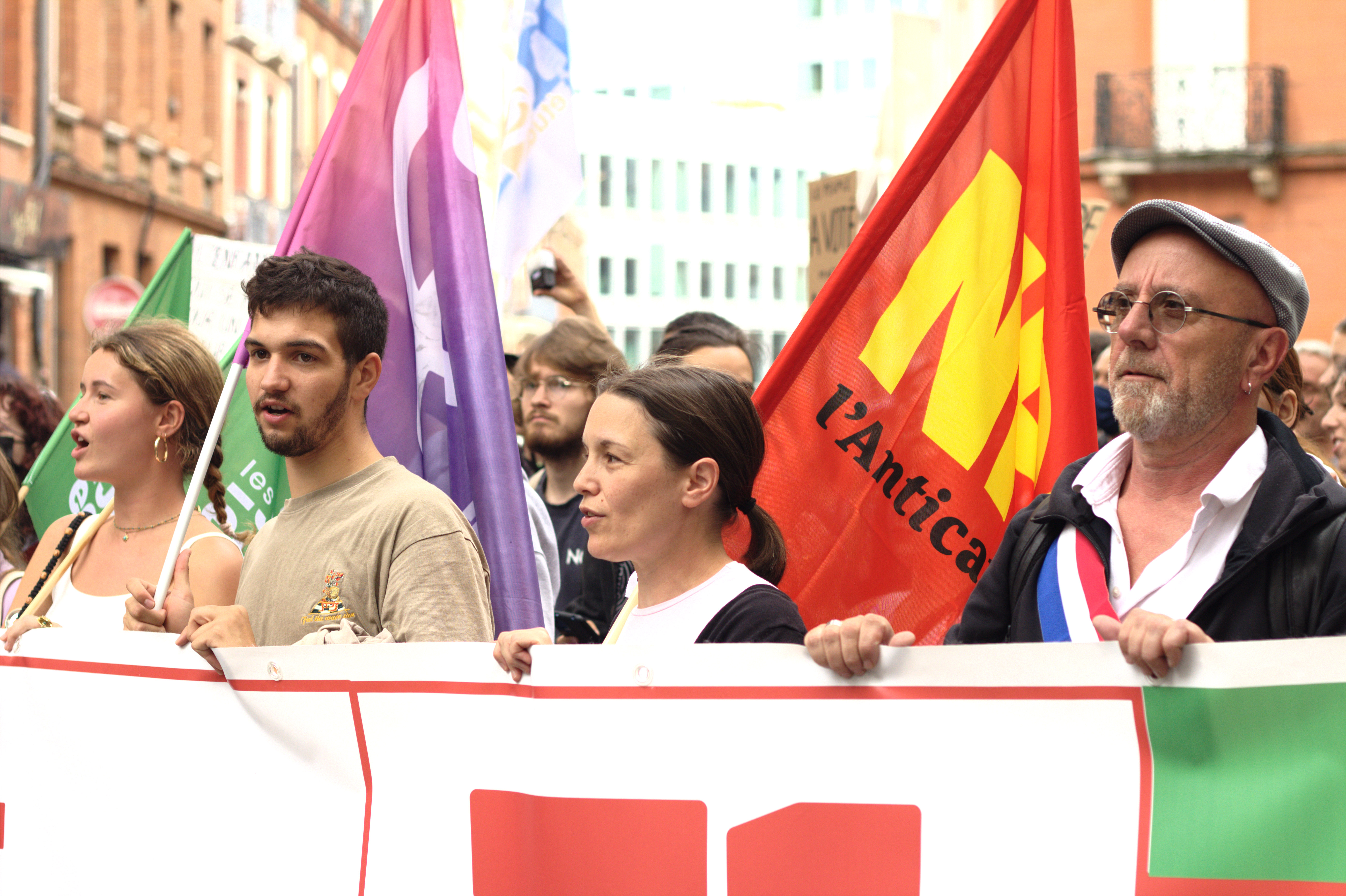 Télécharger la photo “FRANCE - TOULOUSE - MANIFESTATION CONTRE LA NOMINATION DE BARNIER - DETAIL DE LA BANDEROLE DE TETE”