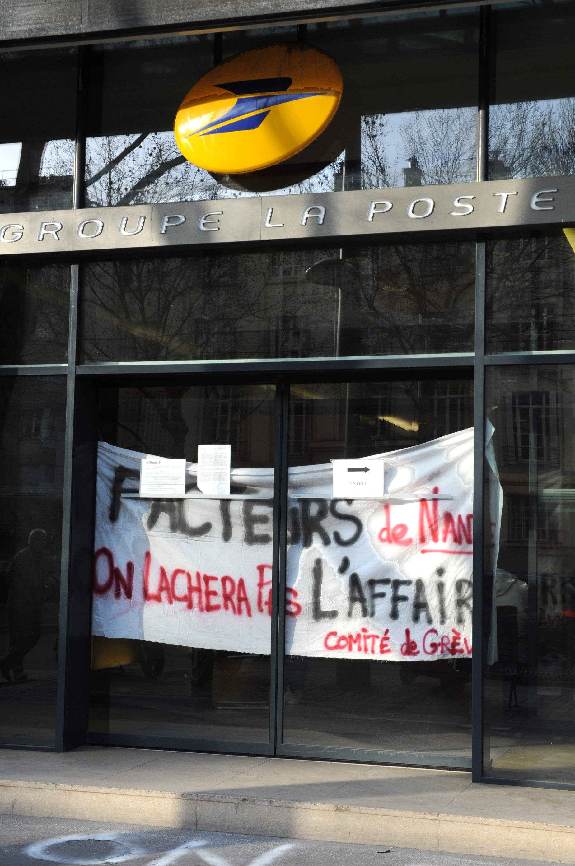 Télécharger la photo “Banderole facteurs on ne lâchera pas l'affaire Comité de grêve”