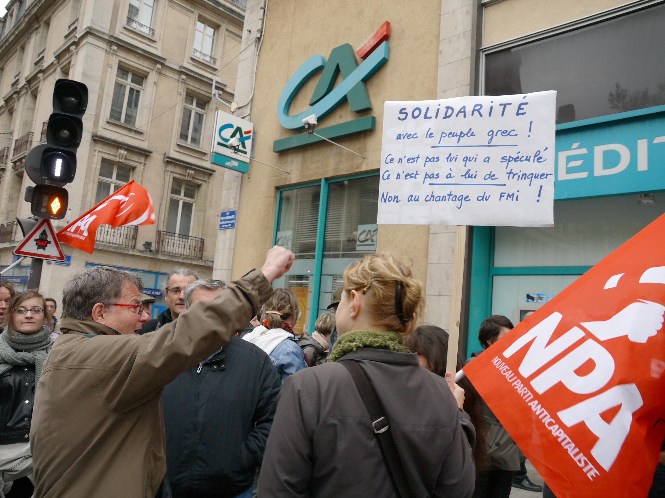 Télécharger la photo “Solidarité avec le peuple grec ! Ce n'est pas lui qui a spéculé, ce n'est pas à lui de trinquer. Non au chantage du FMI ! ”