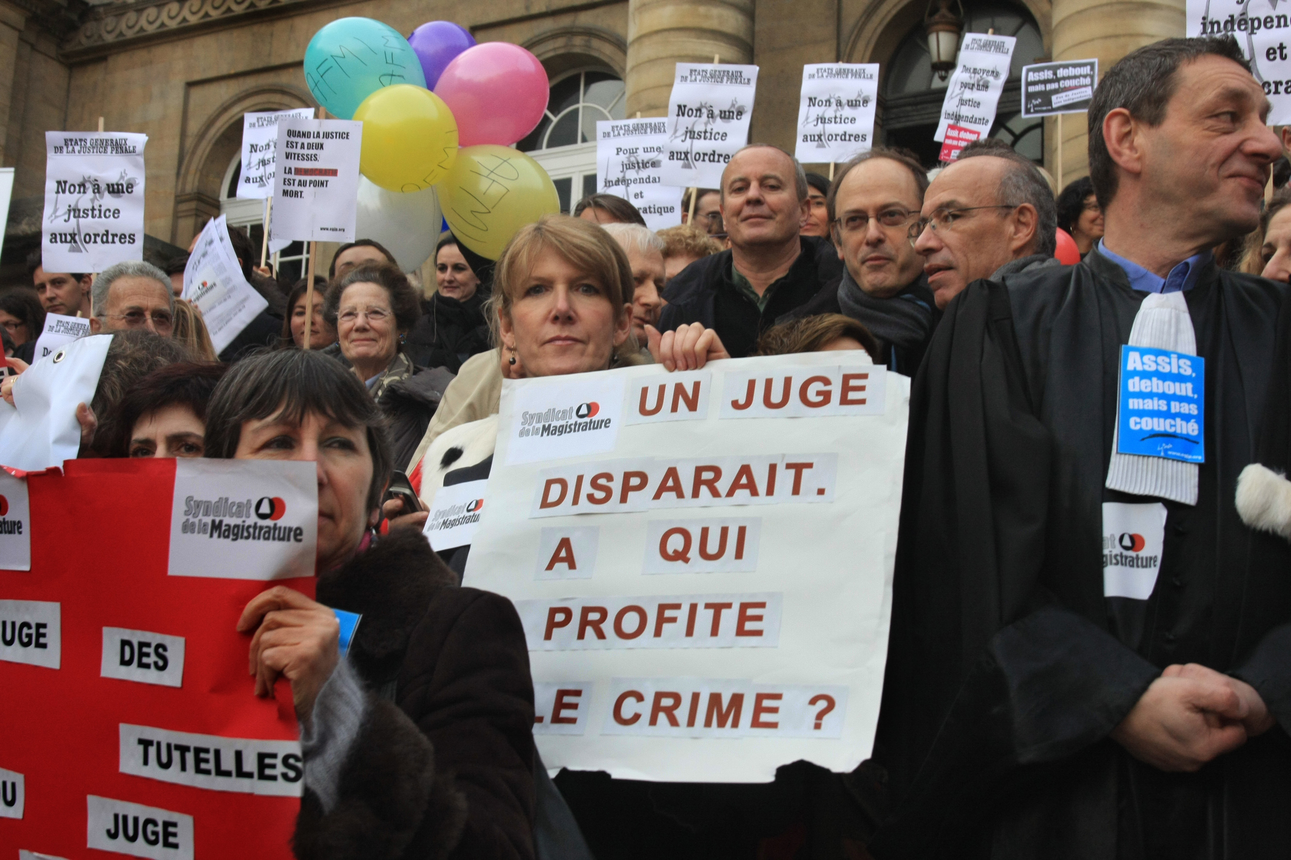 Télécharger la photo “pancarte un juge disparait A qui profite le crime ?”