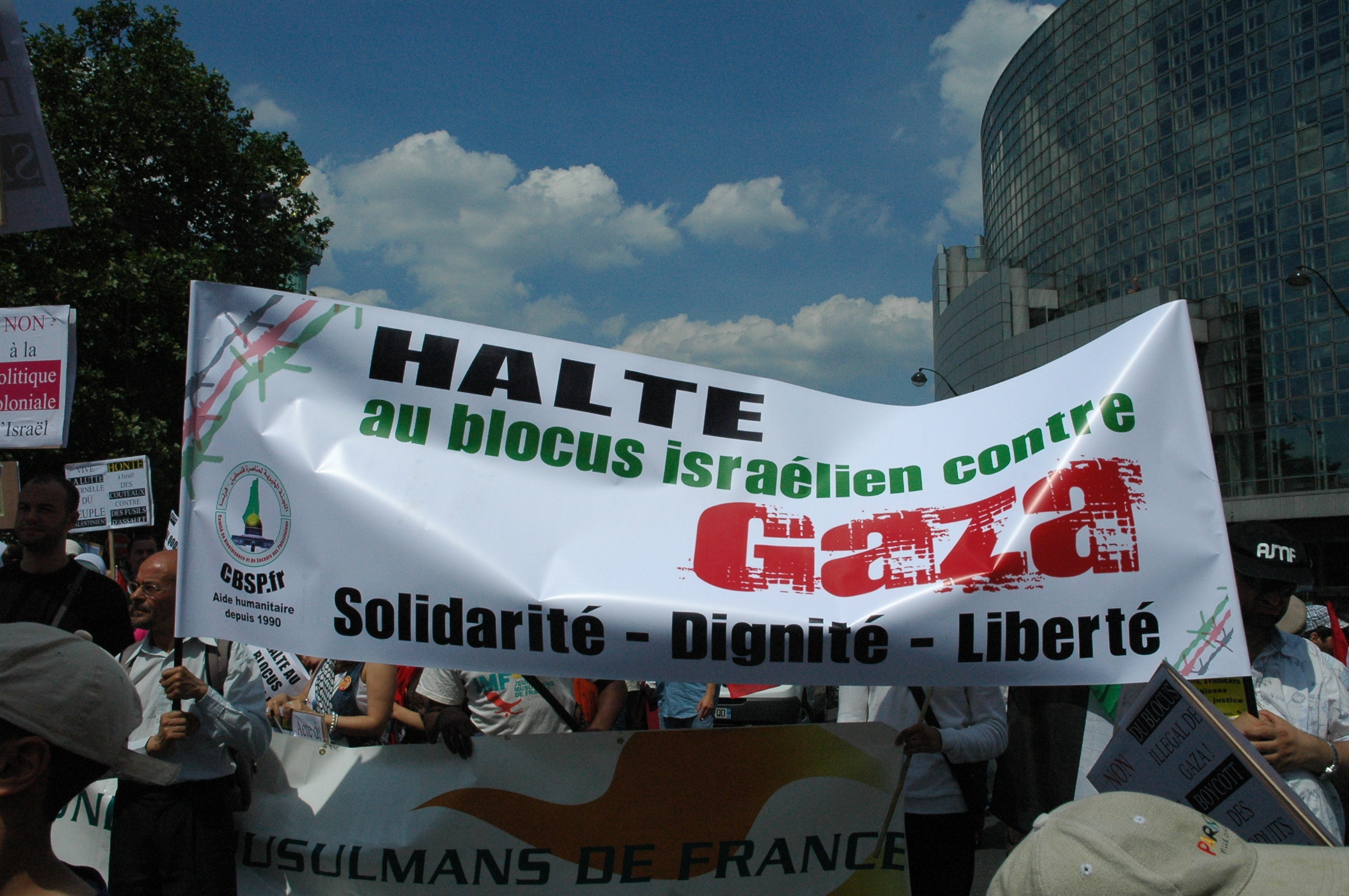 Télécharger la photo “Banderole halte au blocus Israëlien contre GAZA Solidatité Dignité Liberté.”