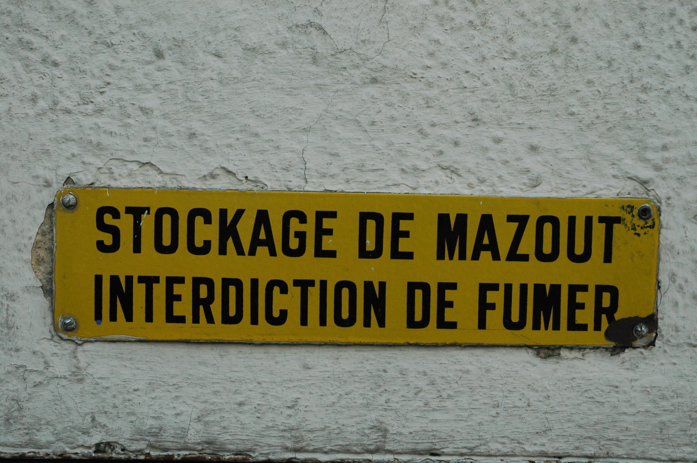 Télécharger la photo “pancarte Stockage de Mazout interdiction de fumer”