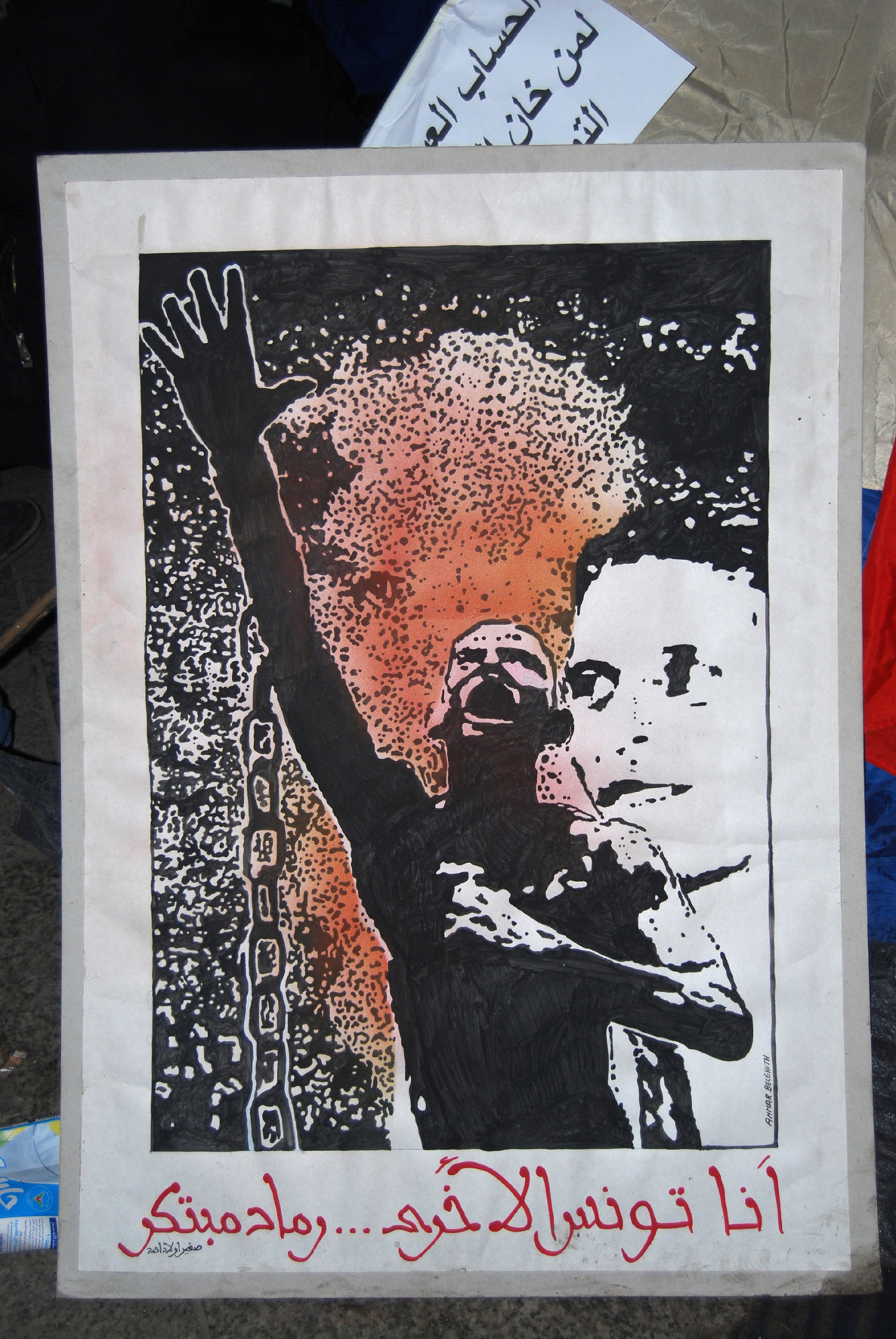 Télécharger la photo “Tunis, place de la Kasbah, dans la nuit du 25 au 26 février 2011. Un artiste affiche: je suis l'autre Tunisie...cendre créatrice”