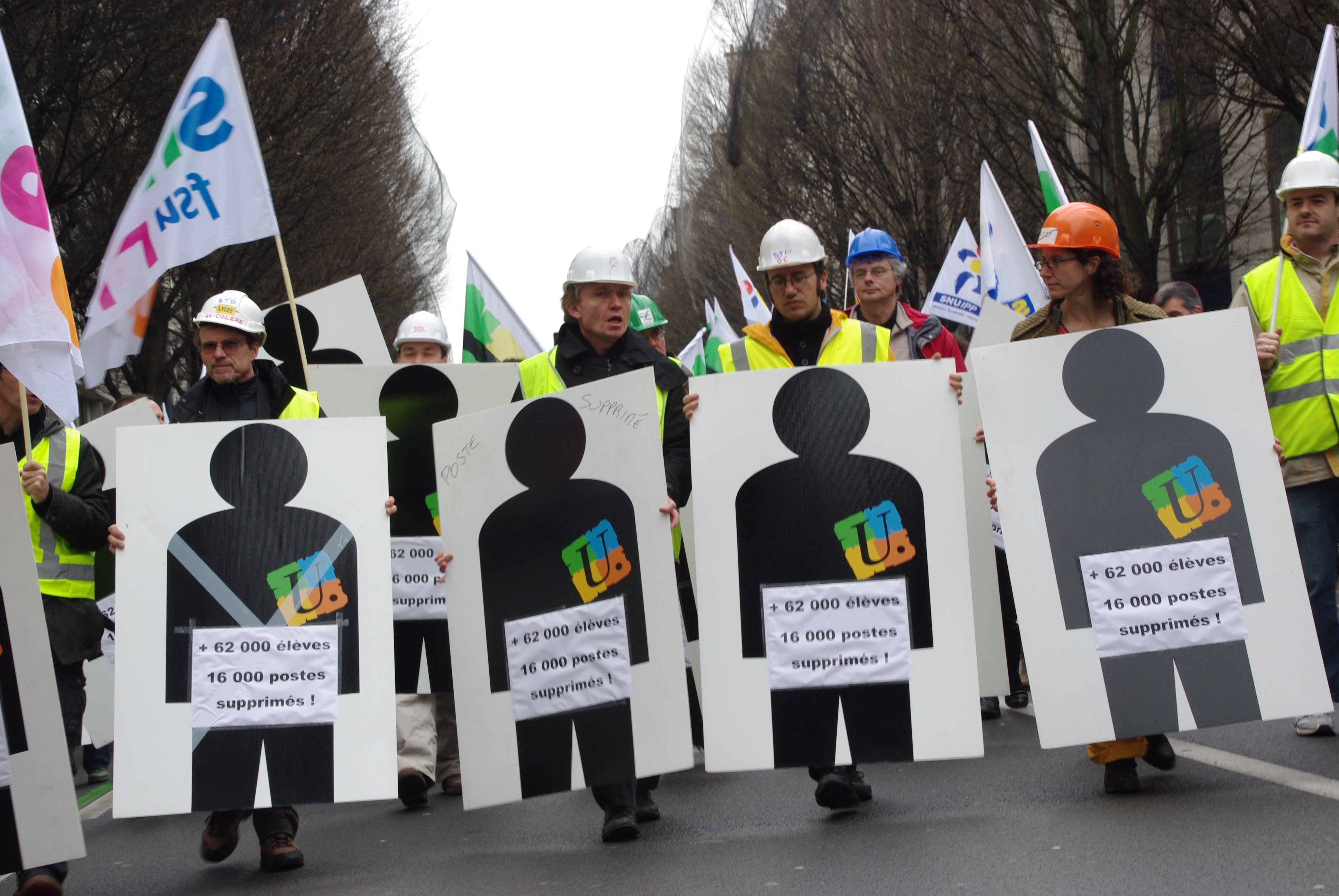 Télécharger la photo “en tete de cortege des silhouettes symbolisant les suppressions de postes ”