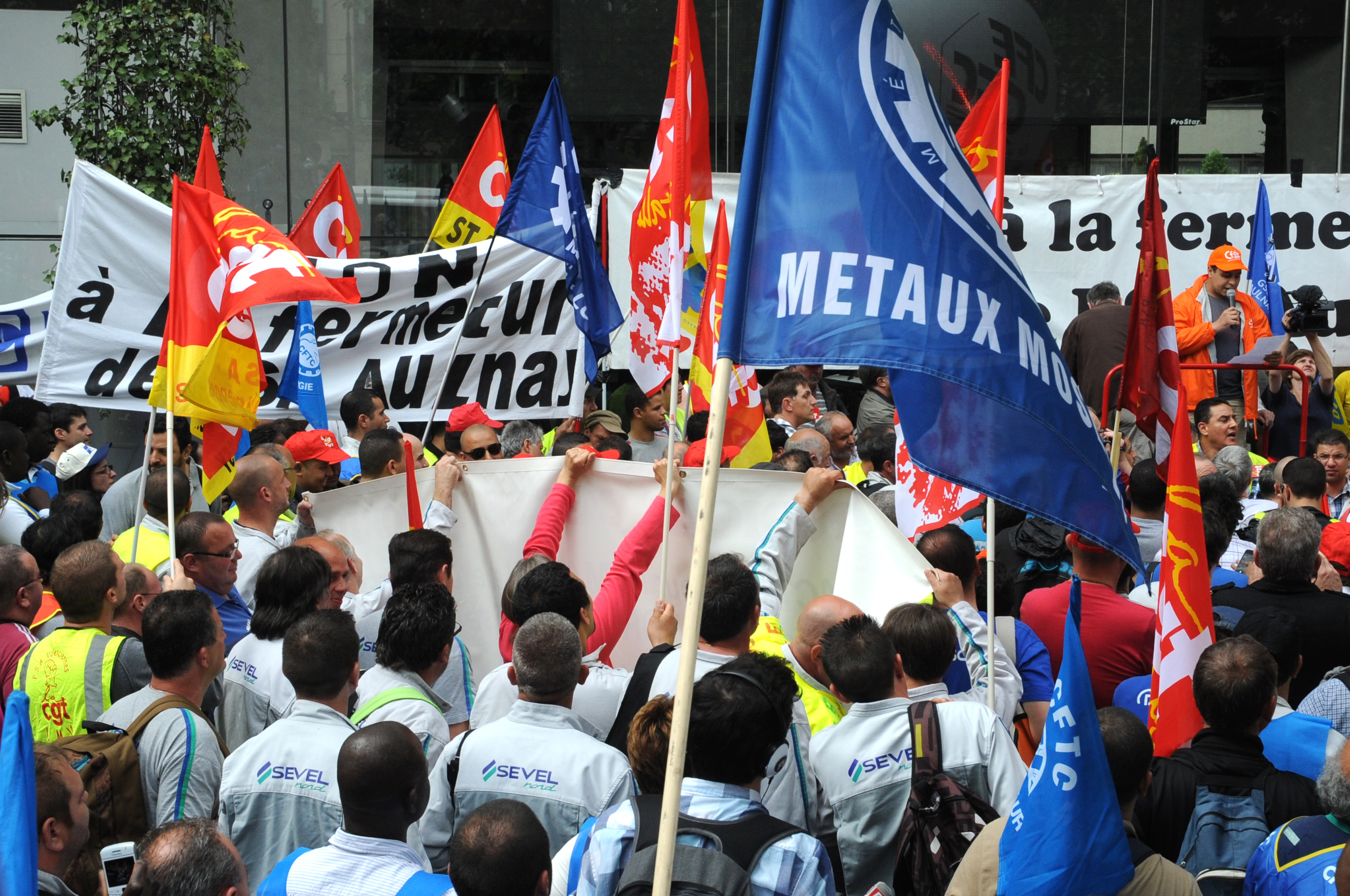 Télécharger la photo “Rassemblement syndical de l'automobile au siège de PSA”