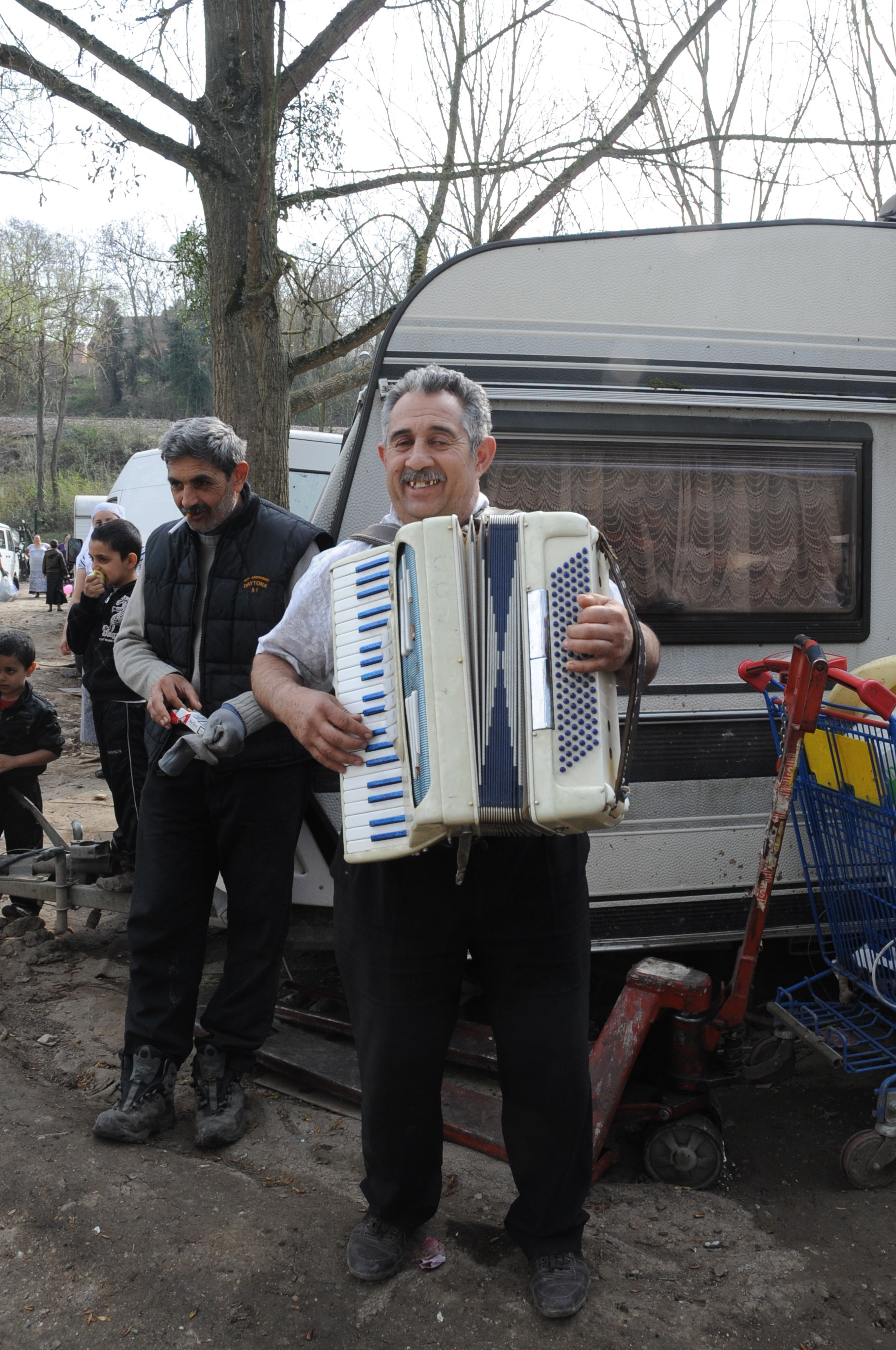 Télécharger la photo “Roms et son accordéon jouant un morceau de musique aux collecteurs d'ordures venus les aider”