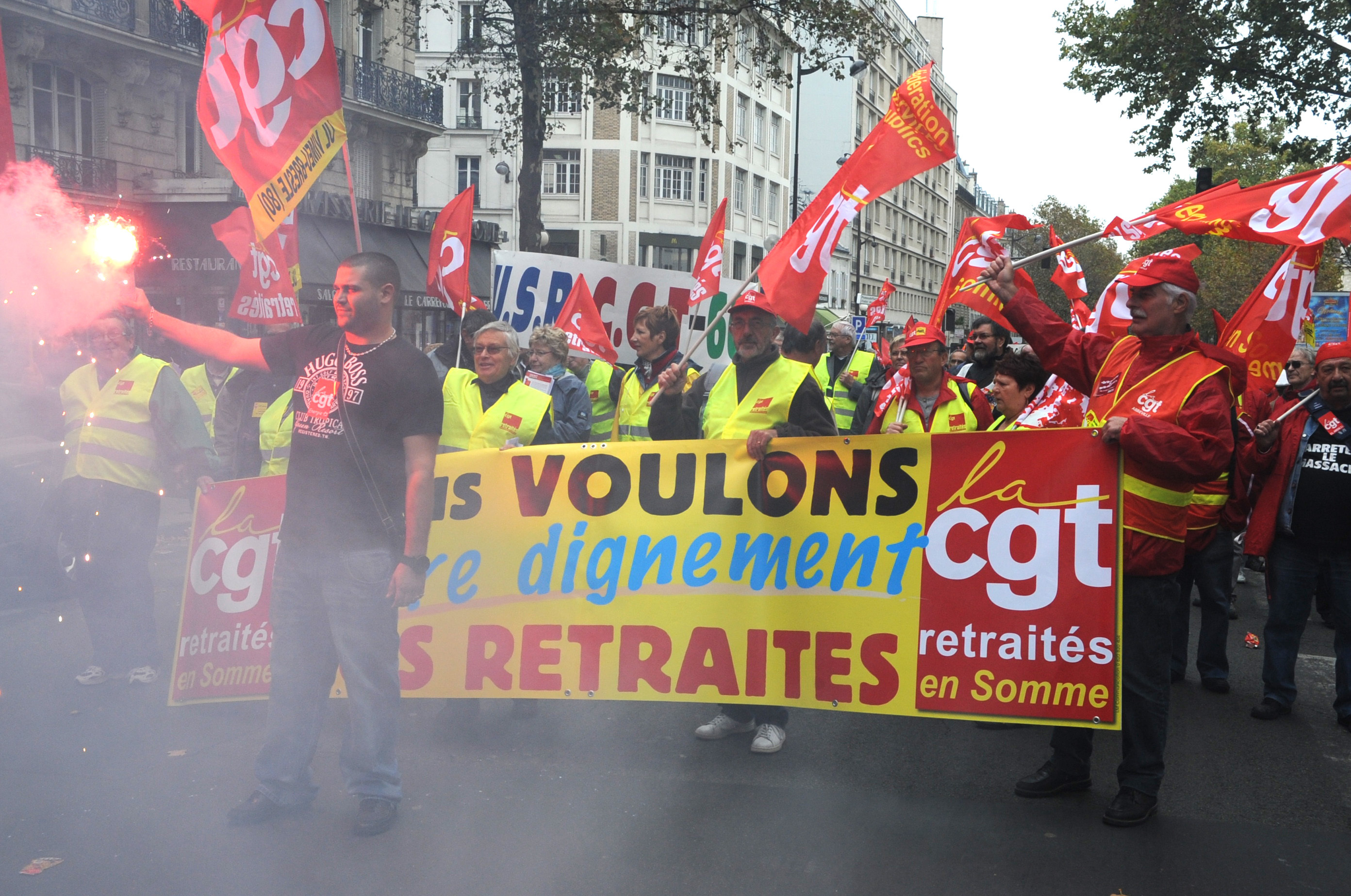 Télécharger la photo “banderole Cgt retraités en Somme Nous voulons vivre dignement nos retraites”