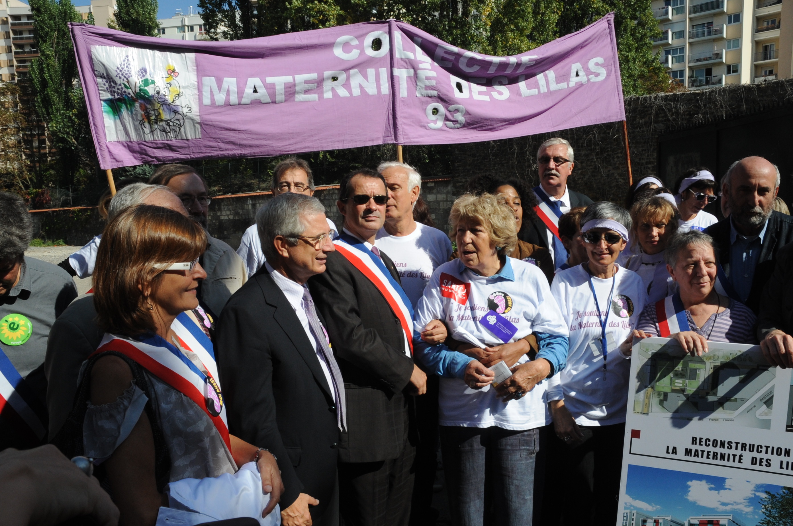 Télécharger la photo “Le maire des Lilas devant le terrain de reconstruction de la maternité”