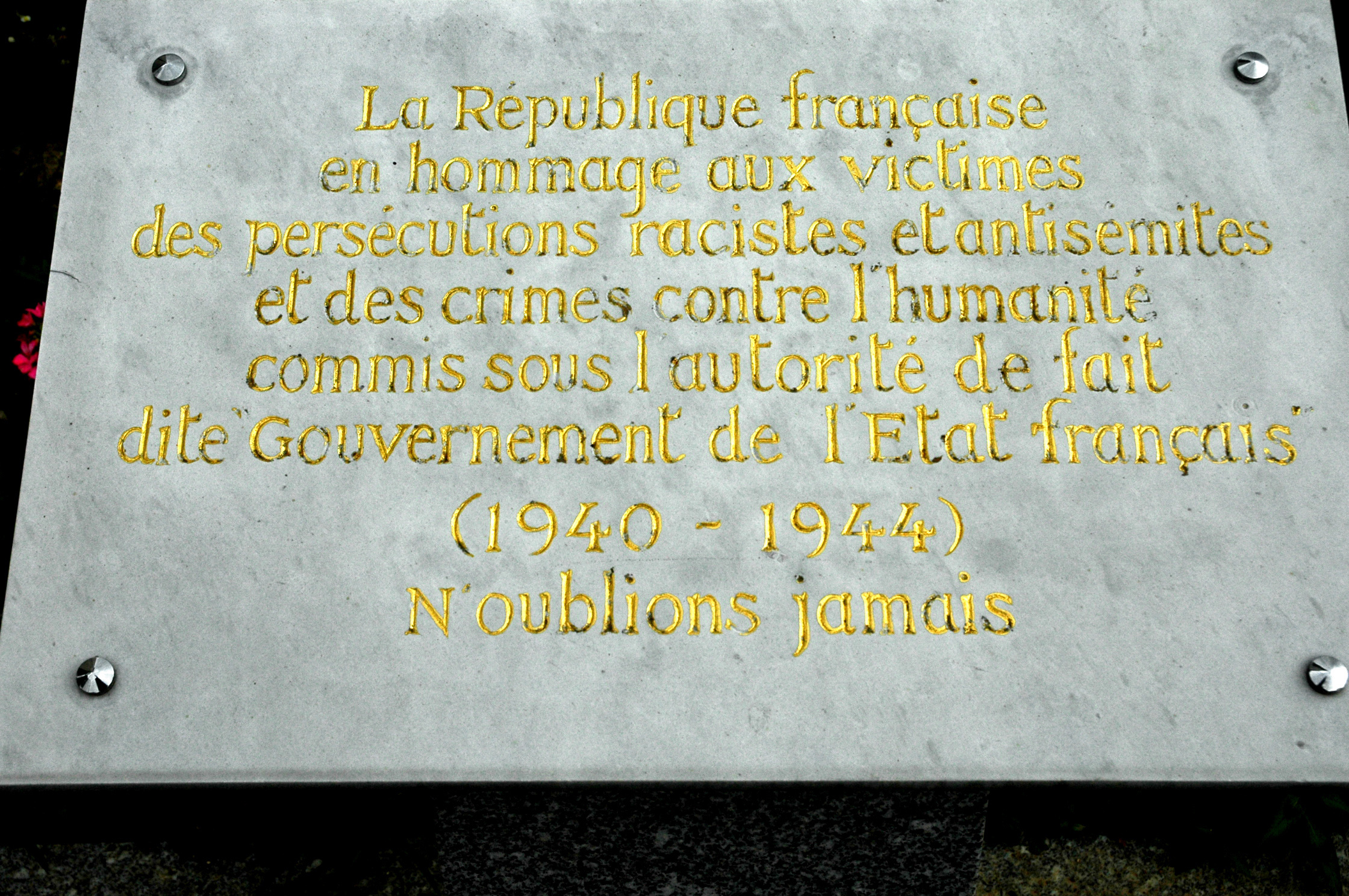 Télécharger la photo “Plaque commémorative victimes des persécutions racistes et antisémites (1940-1944)”