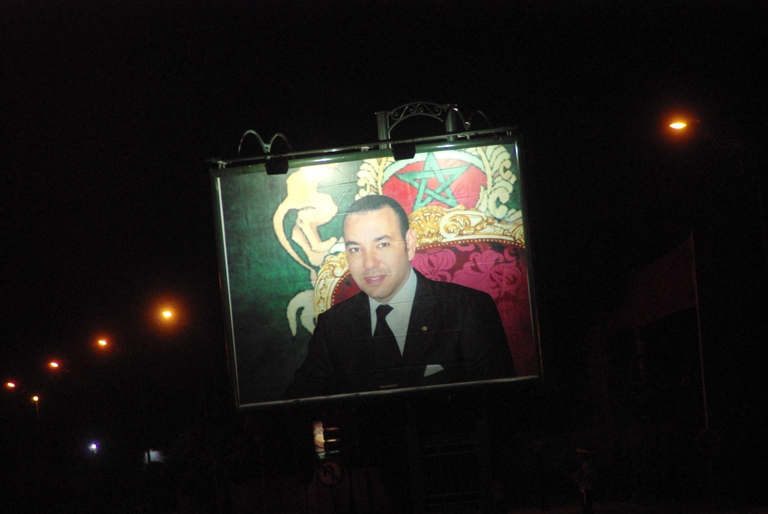 Télécharger la photo “portrait géant du roi du Maroc Mohamed VI sur une avenue de Marrakech”