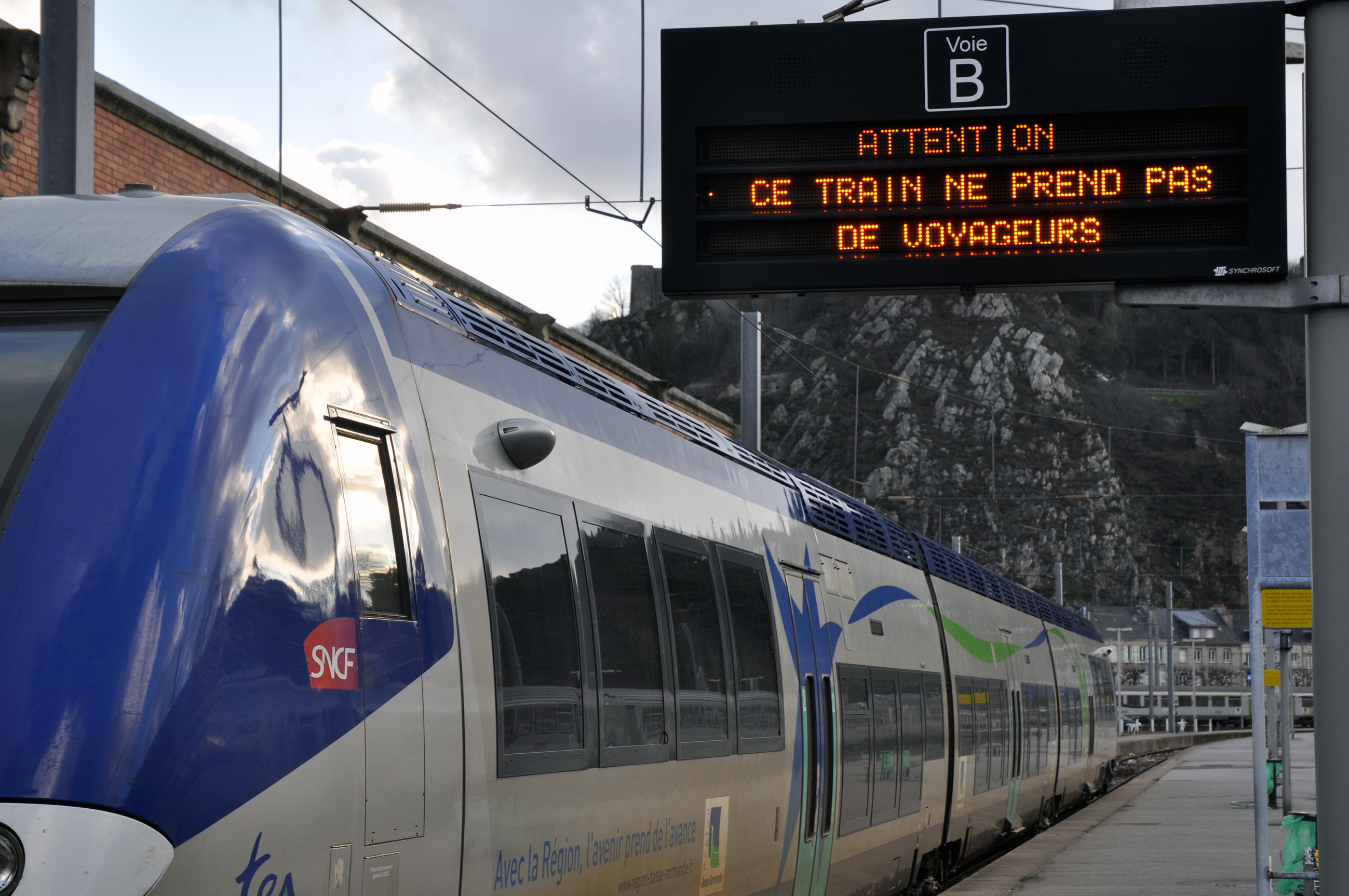 Télécharger la photo “TER en gare panneau Attention ce train ne prend pas de voyageurs”