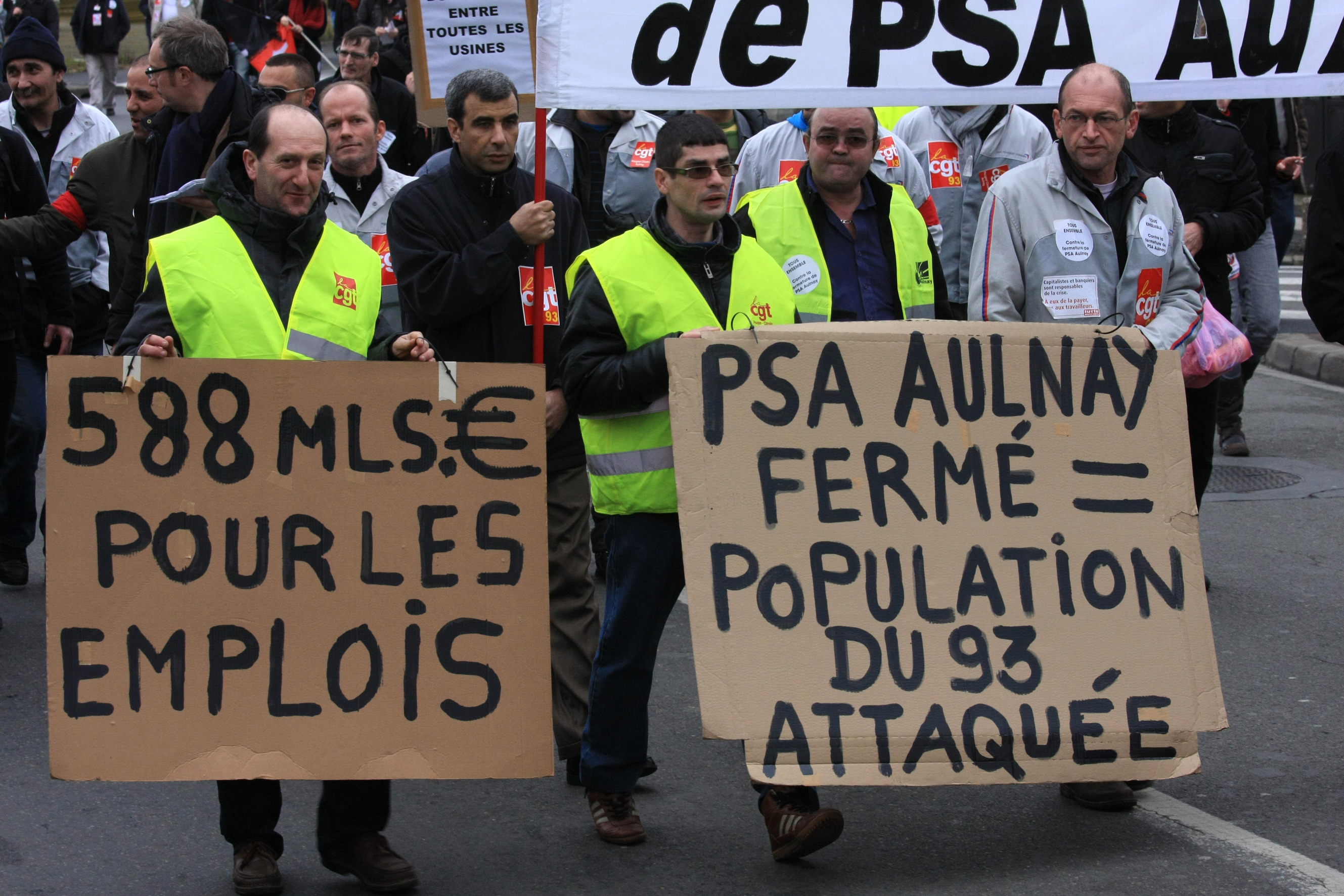 Télécharger la photo “pancartes PSA Aulnay fermé = population du 93 attaquée”