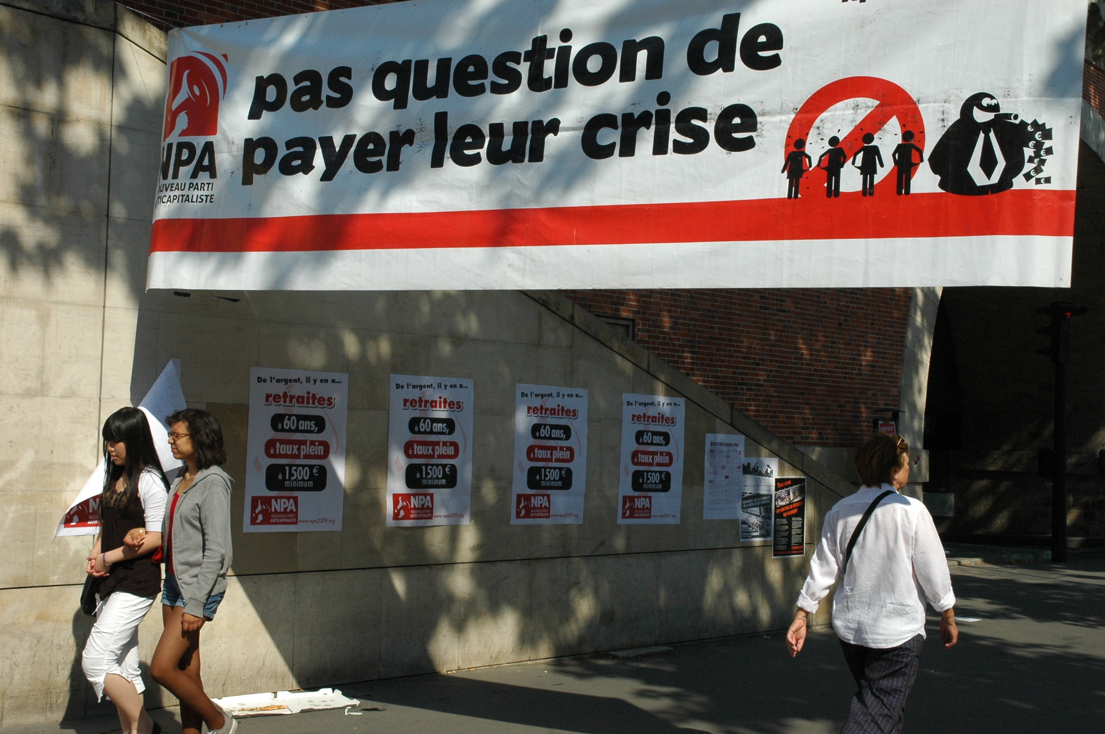 Télécharger la photo “banderole NPA Pas Question de Payer leur Crise.”