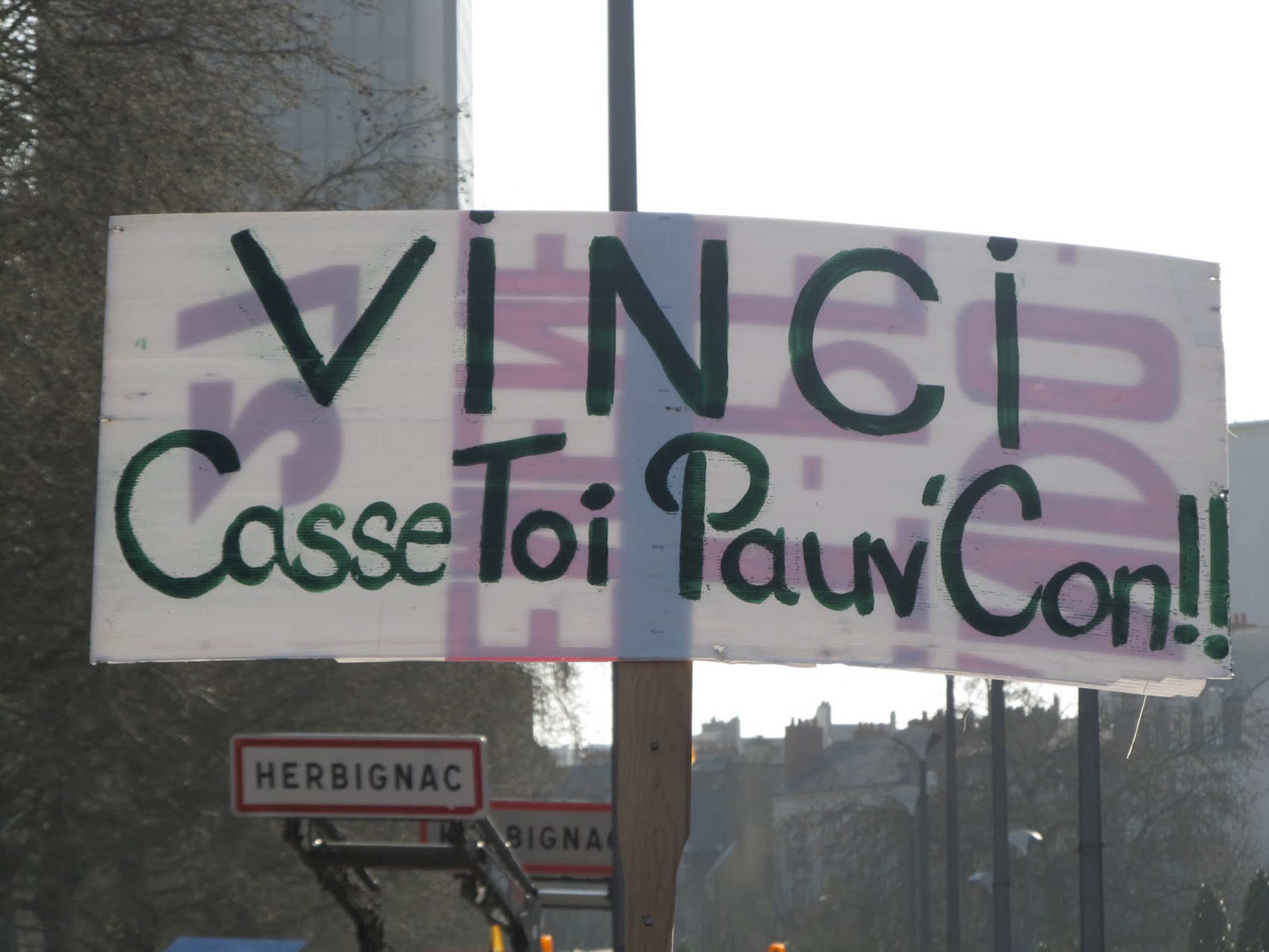 Télécharger la photo “pancarte VINCI Casse Toi Pauv' Con!”