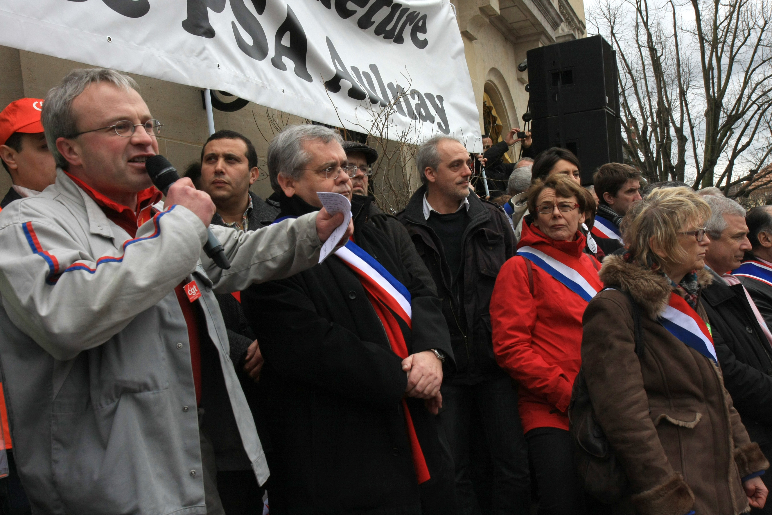 Télécharger la photo “Mercier, responsable CGT d'Aulnay, le maire d'Aulnay, Philippe Poutou, Martine Billard”
