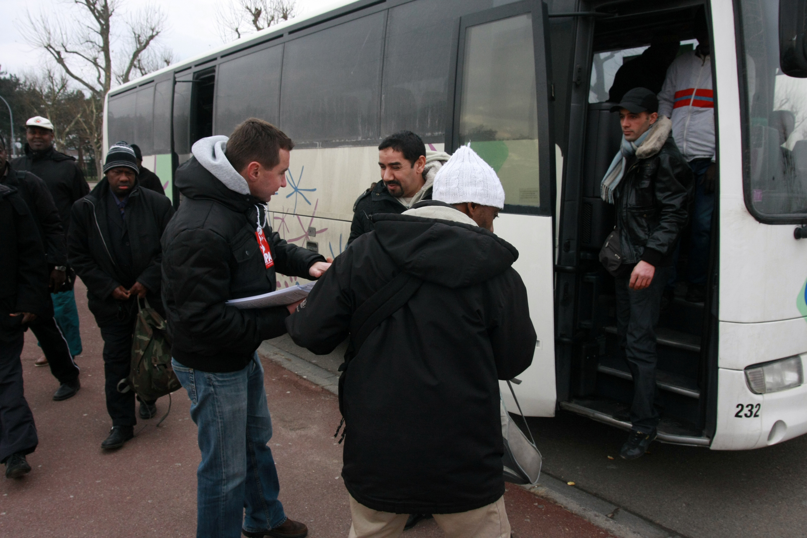 Télécharger la photo “distribution de tracts à la descente des cars”