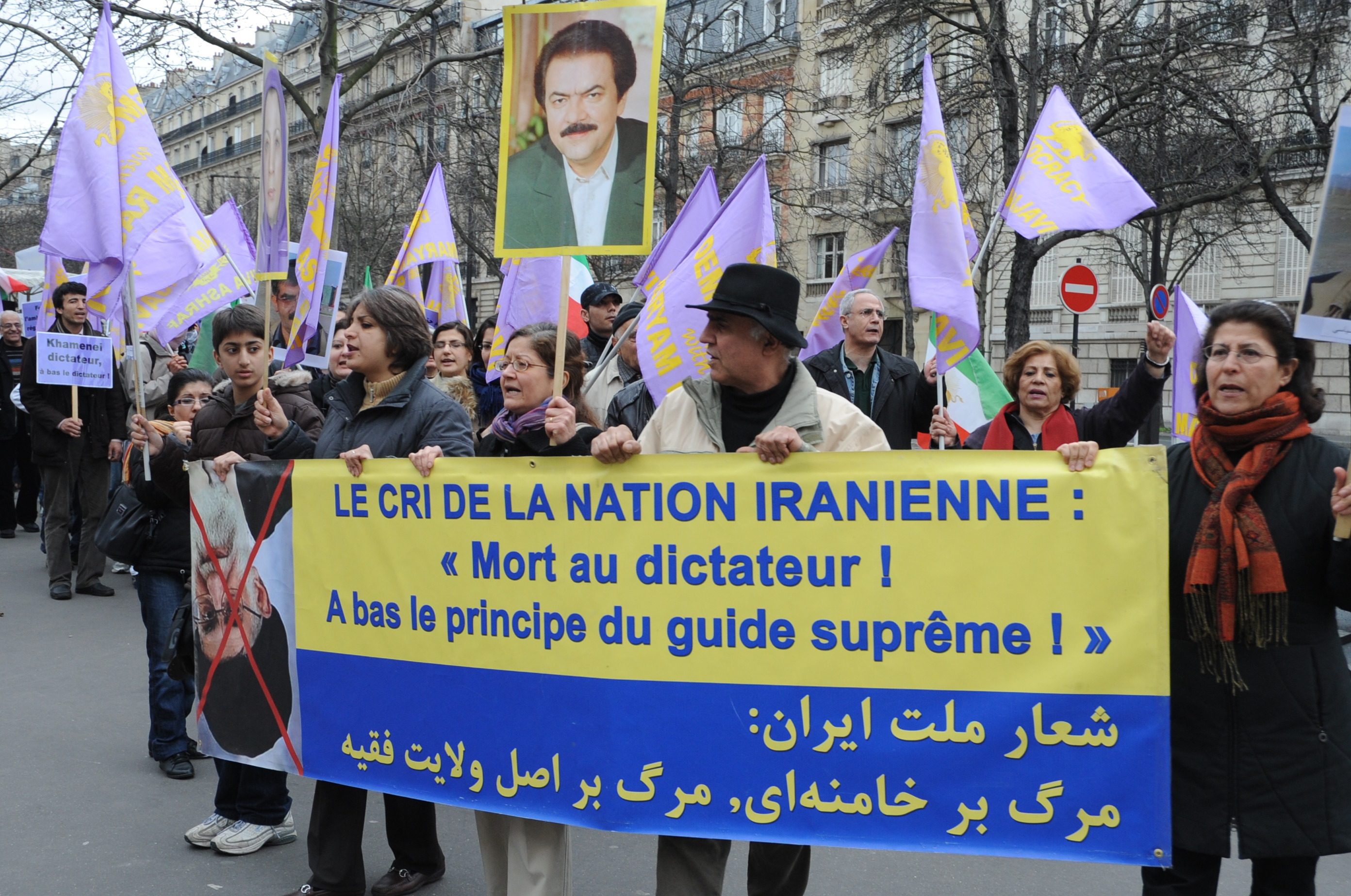 Télécharger la photo “banderole Le cri de la nation Iranienne Mort au dictateur ! A bas le principe du guide suprême !”